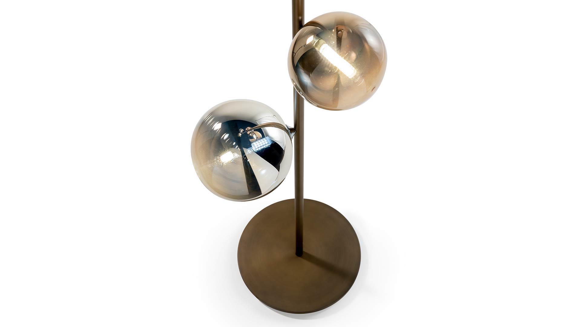 Торшер BULLES XL от итальянской фабрики REFLEXANGELO – элегантное решение для современного интерьера. Модель украшена боросиликатными стеклянными шариками (2×16 см и 3×20 см) с внутренней светодиодной подсветкой (5×3,5W G9, 3000K). Доступны варианты с бронзовым, медным, серебряным или золотым напылением, создающим эффект мягкого свечения. Итальянское качество и продуманный дизайн делают этот торшер стильным акцентом в любом пространстве.