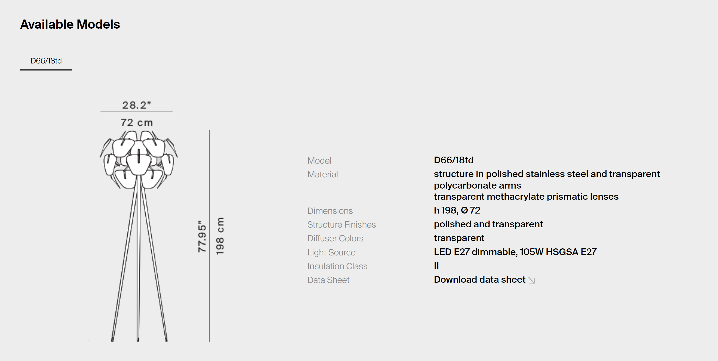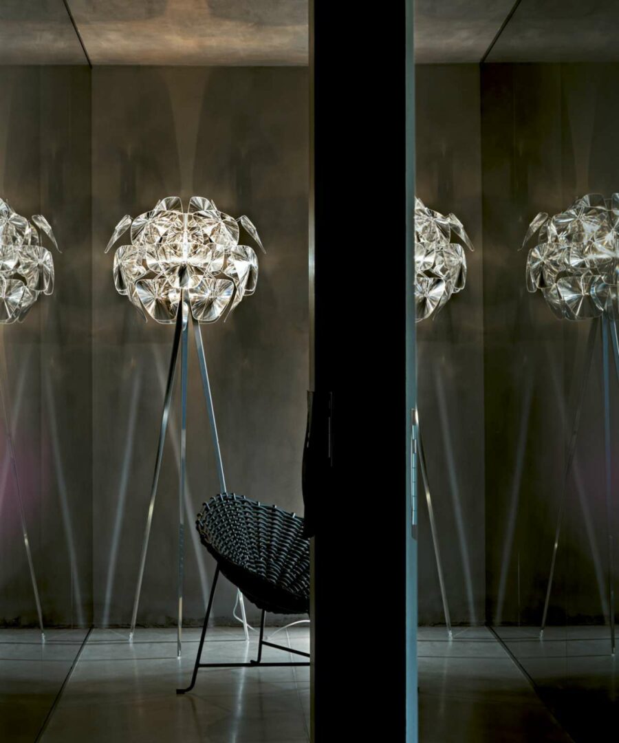 Торшер Diade Hope от итальянской фабрики LucePlan — воплощение элегантности и инноваций. Модель вдохновлена хрустальными люстрами, но выполнена в современной интерпретации. Метакрилатные лепестки с эффектом линз Френеля создают уникальную игру света, а поликарбонатные «веточки» на стальной основе придают торшеру лёгкость и изящество.