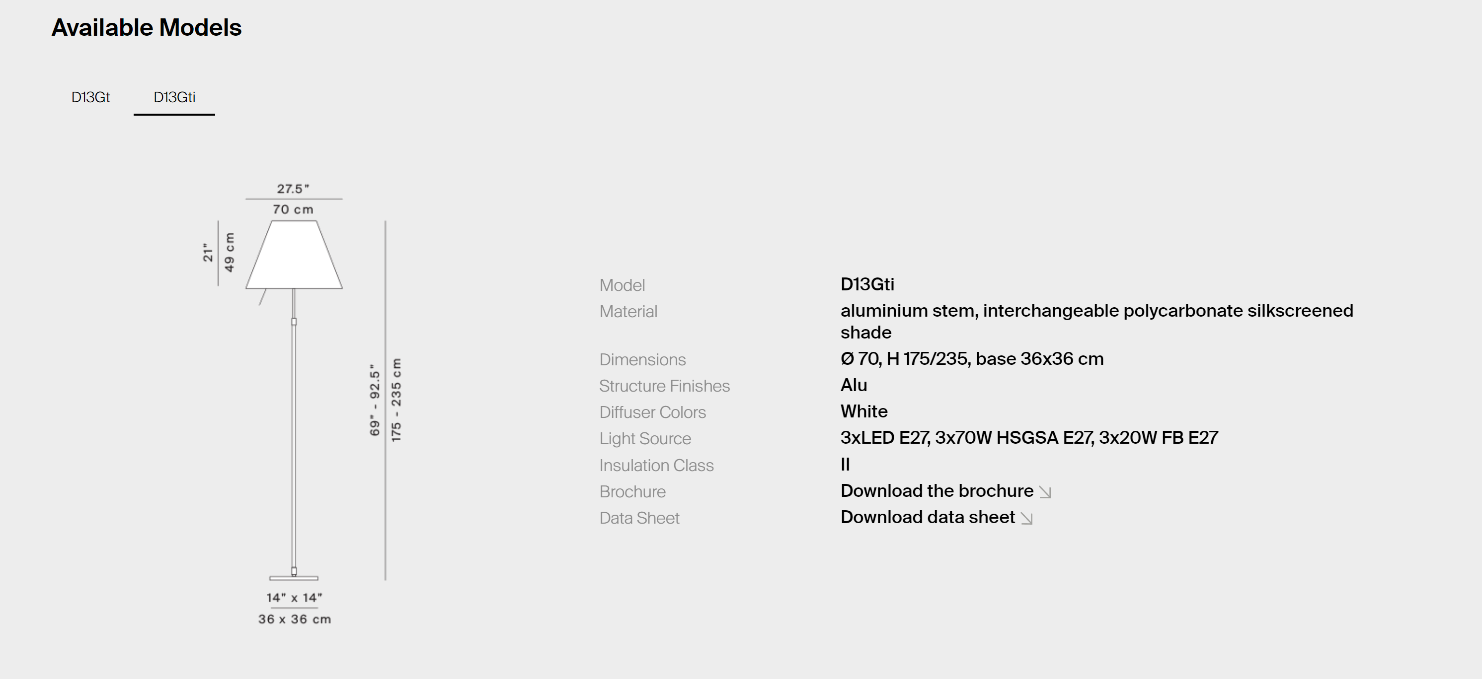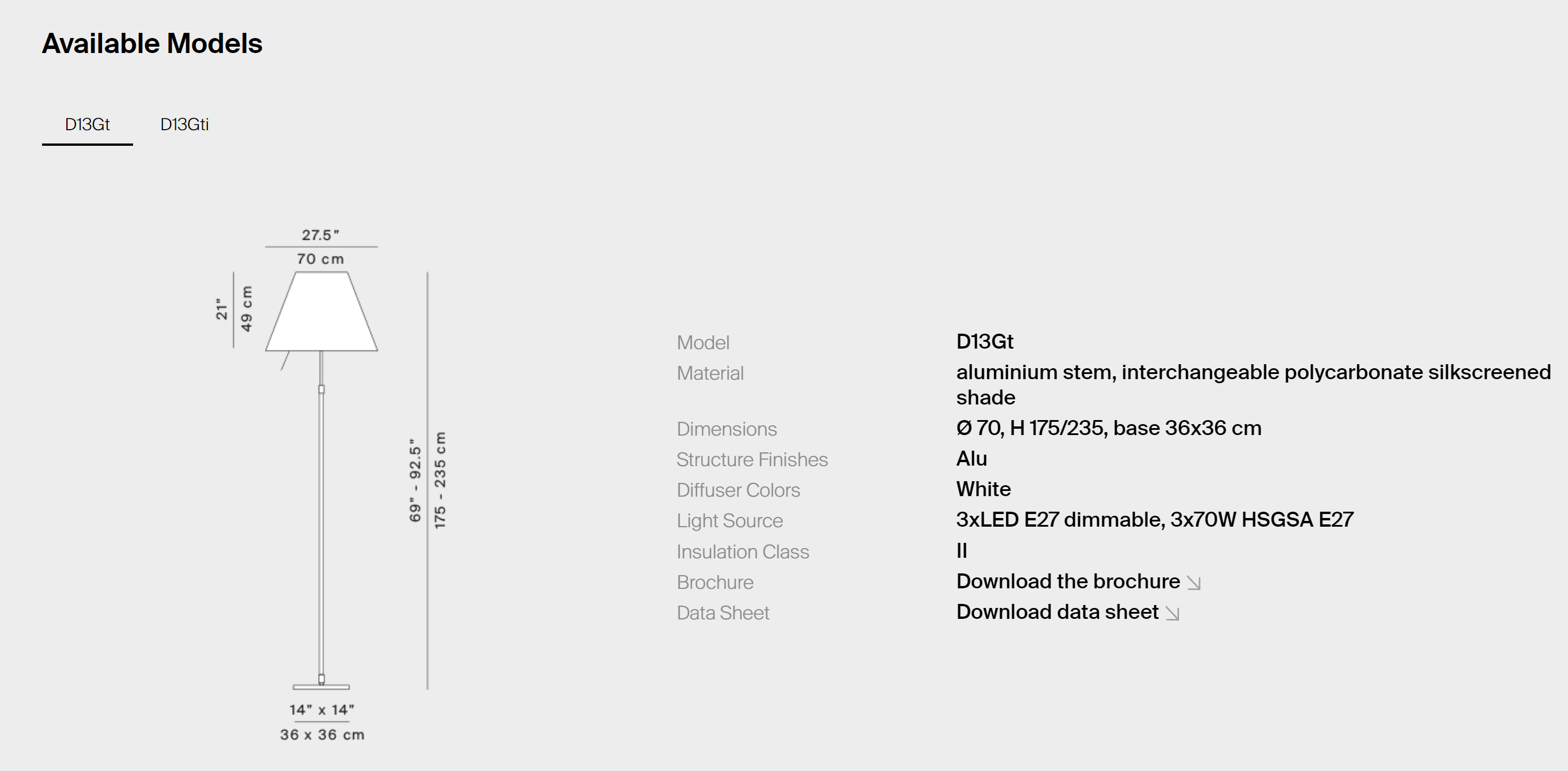 Каждая деталь торшера Grande Costanza изготовлена из высококачественных материалов, которые гарантируют долговечность и безупречный внешний вид: