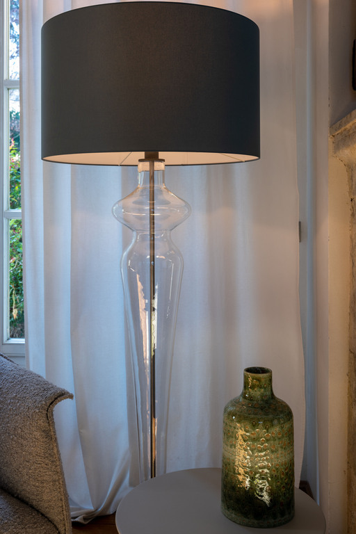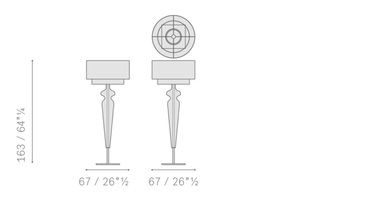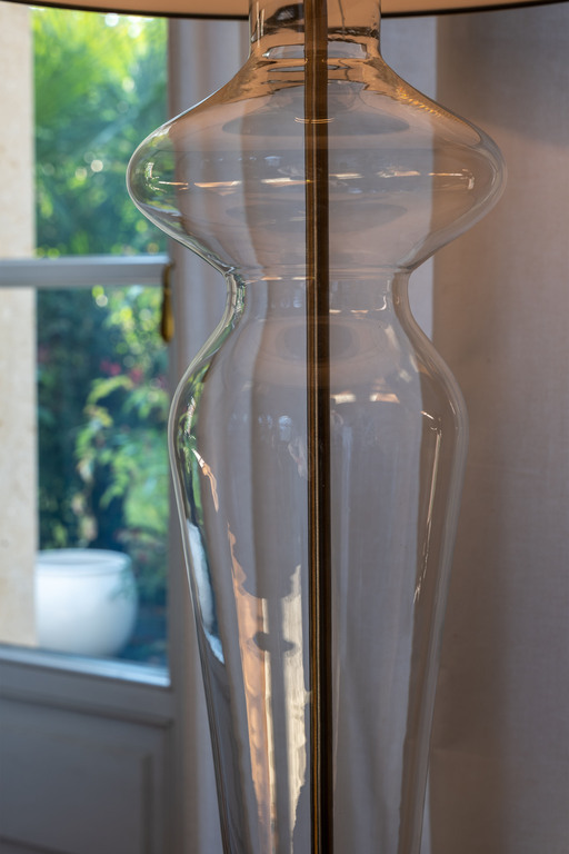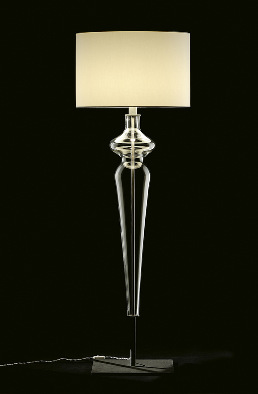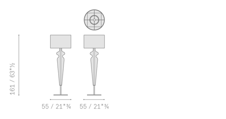 Каждая линия торшера Holly пронизана гармонией и элегантностью. Прозрачный стеклянный силуэт, формирующий стилизованный женский профиль, создает уникальную атмосферу, сочетая в себе мягкость и стройность. Основание из окрашенного металла и полированные латунные элементы придают изделию роскошный вид, а двойной абажур, выполненный из высококачественного полотна и внутреннего ПВХ, обеспечивает мягкое и уютное освещение.