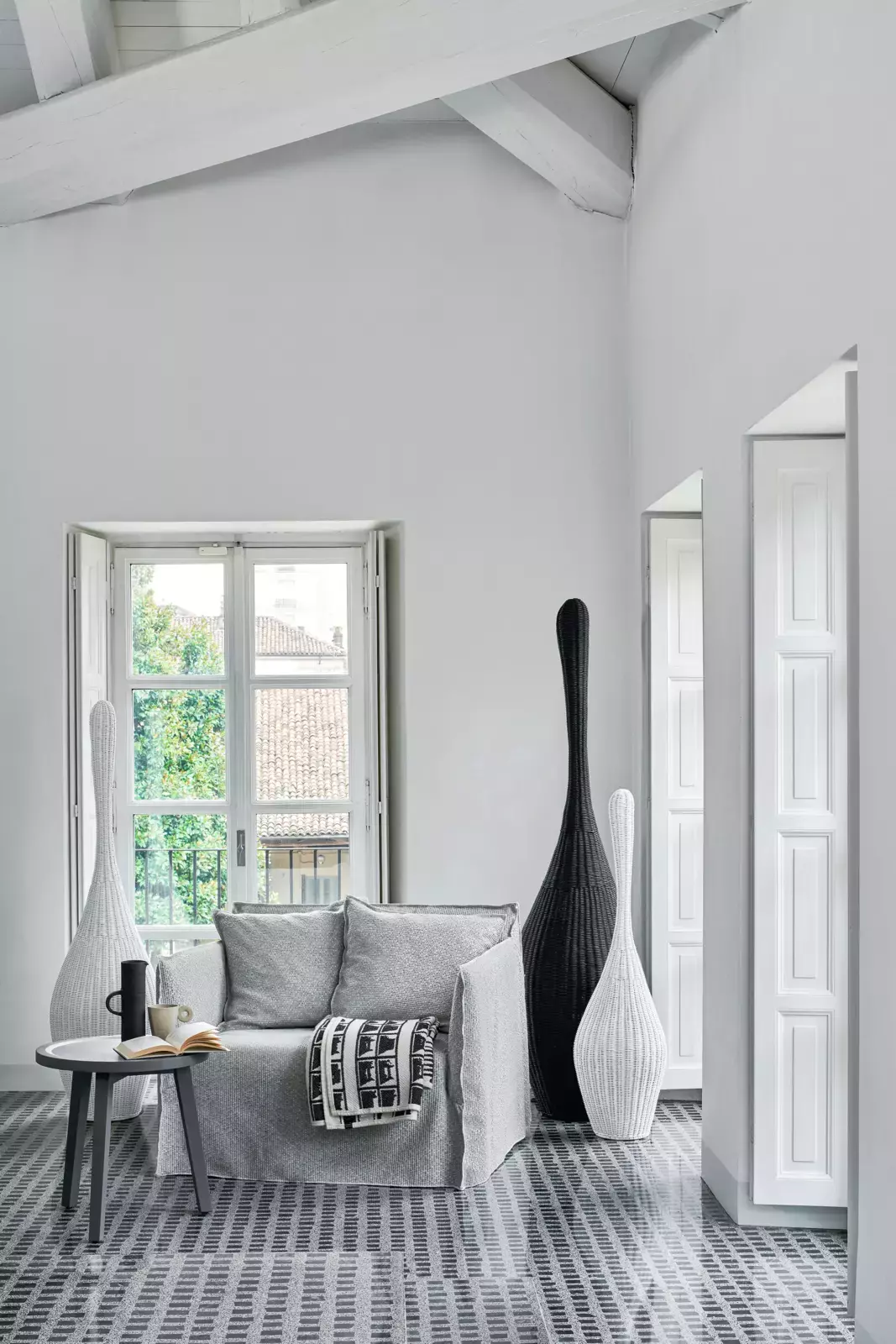 Итальянский торшер Standing lamp S-XL Collection Bolla от фабрики Gervasoni — воплощение элегантности и мастерства. Изготовлен из натурального меланжевого плетения или покрыт лаком в матовых оттенках: белом, сером, черном, океаническом или сизо-голубом. Уникальная форма, напоминающая бутылку, подчеркивает итальянский дизайн и искусную работу с материалами.