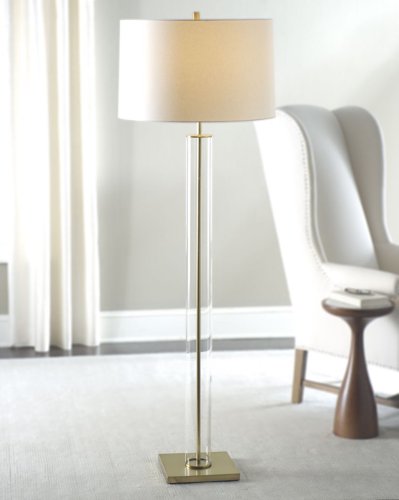 Торшер TOMAS GOLD от фабрики LOUVREHOME (Китай) — элегантное напольное освещение в премиальном исполнении. Модель сочетает стеклянную колонну с металлическим стержнем и квадратным основанием из полированного золотого металла, обеспечивая устойчивость и стильный акцент в интерьере.