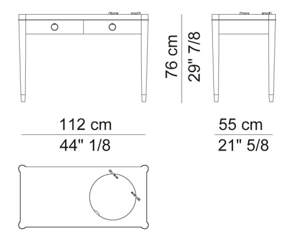 Элегантные вставки из атласной латуни или бронзы придают столику утонченный вид, а ручка Лолиты завершает его стильный облик. Нижняя часть ящиков покрыта синтетической кожей, что добавляет дополнительный шарм. Этот столик станет прекрасным дополнением вашего интерьера.