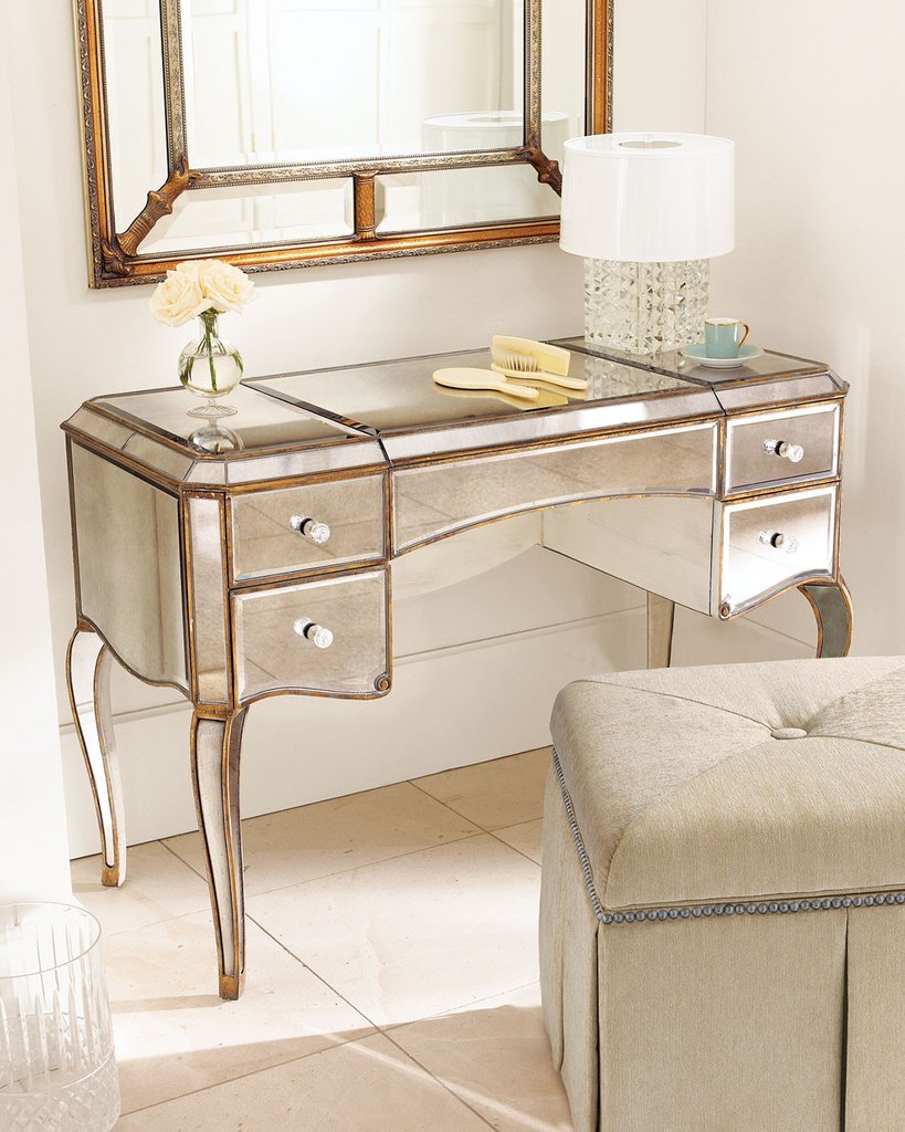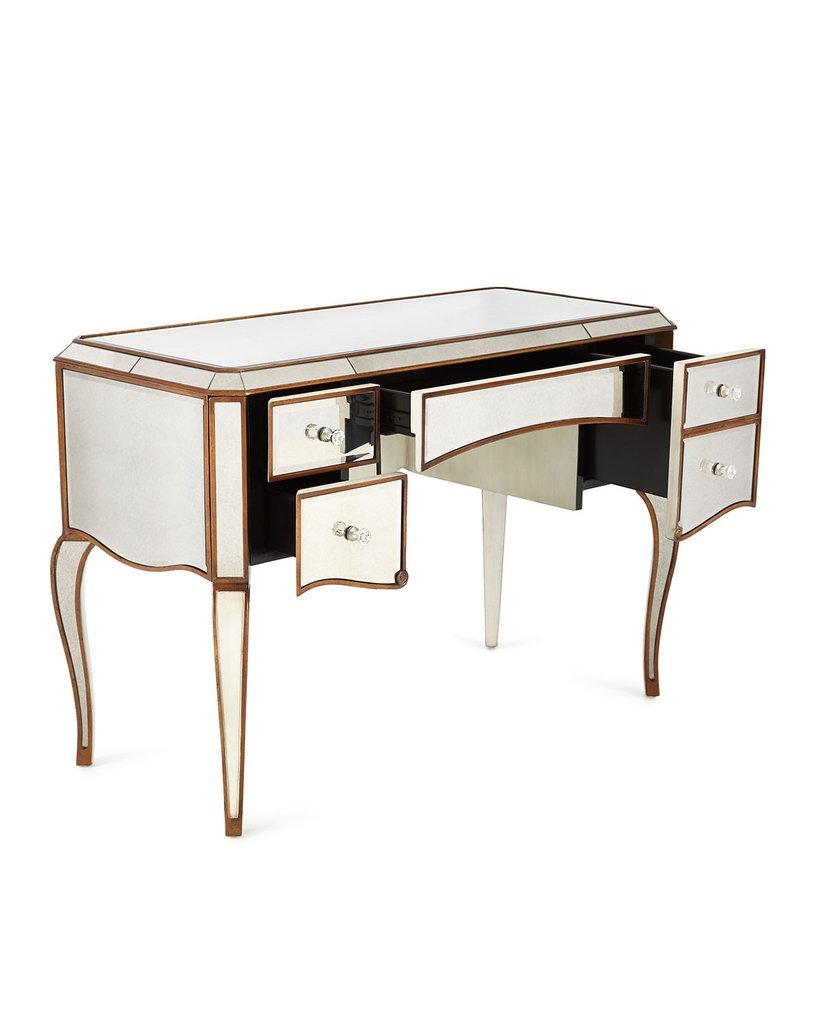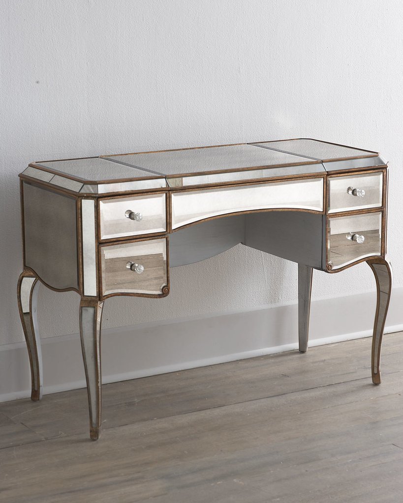 Туалетный столик AMELIE от фабрики LOUVREHOME (Китай) сочетает классический стиль с функциональностью. Зеркальная столешница и пять вместительных ящиков создают удобное пространство для хранения косметики и аксессуаров. Размеры: 110×50×76 см – компактный, но практичный вариант для спальни или гардеробной.