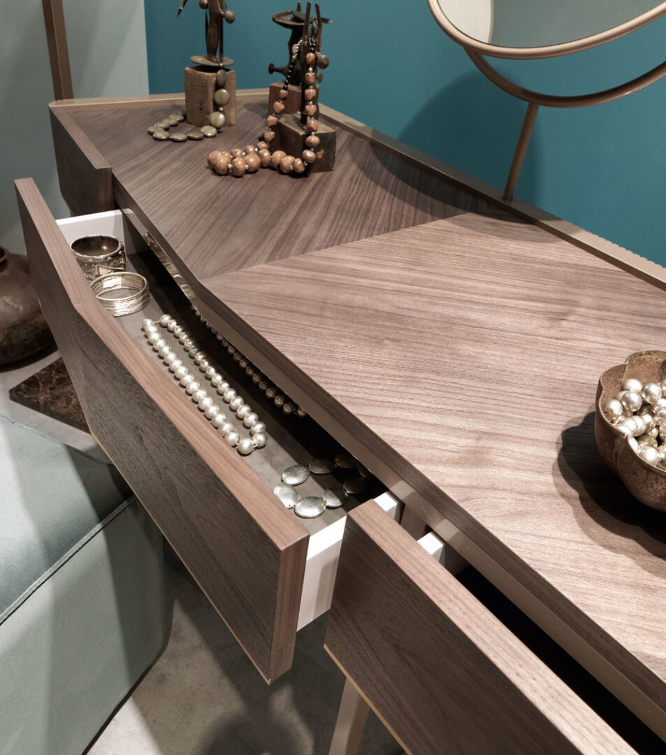 Каждый этап производства туалетного столика BEVERLY контролируется мастерами фабрики CORTEZARI. Итальянские традиции сочетаются с современными технологиями: