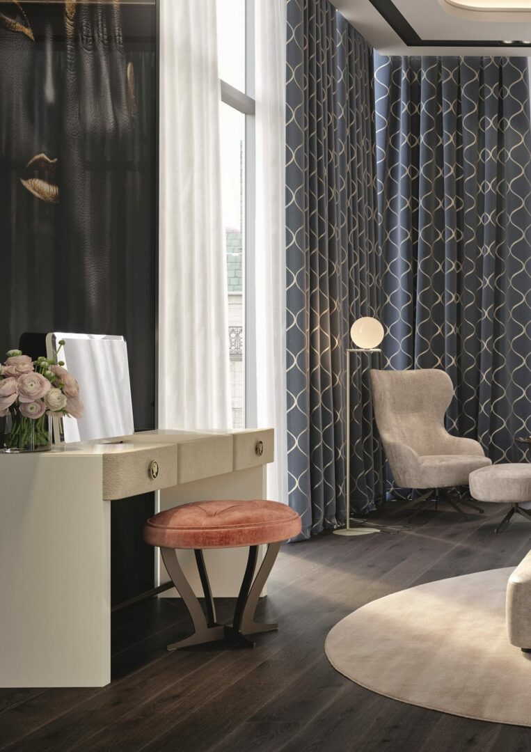 Туалетный столик JASMINE станет идеальным дополнением вашей спальни, создавая атмосферу уюта и стиля. Представьте, как вы наслаждаетесь утренними ритуалами, сидя за этим изысканным изделием, окружая себя роскошью и комфортом. Он также может служить прекрасным местом для хранения косметики и аксессуаров, сохраняя порядок и организованность.