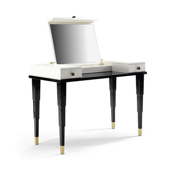 Каждая деталь туалетного столика LUMIERE продумана до мелочей. Лакированный верх, изящные линии и выдвижное зеркало создают впечатление легкости и элегантности. Петельки из атласной латунной или бронзовой отделки добавляют нотку изысканности, а ручки из белокурого рога буйвола подчеркивают статусность этого предмета. Столик не только функционален, но и станет эффектным акцентом в любом интерьере, будь то классический или современный стиль.