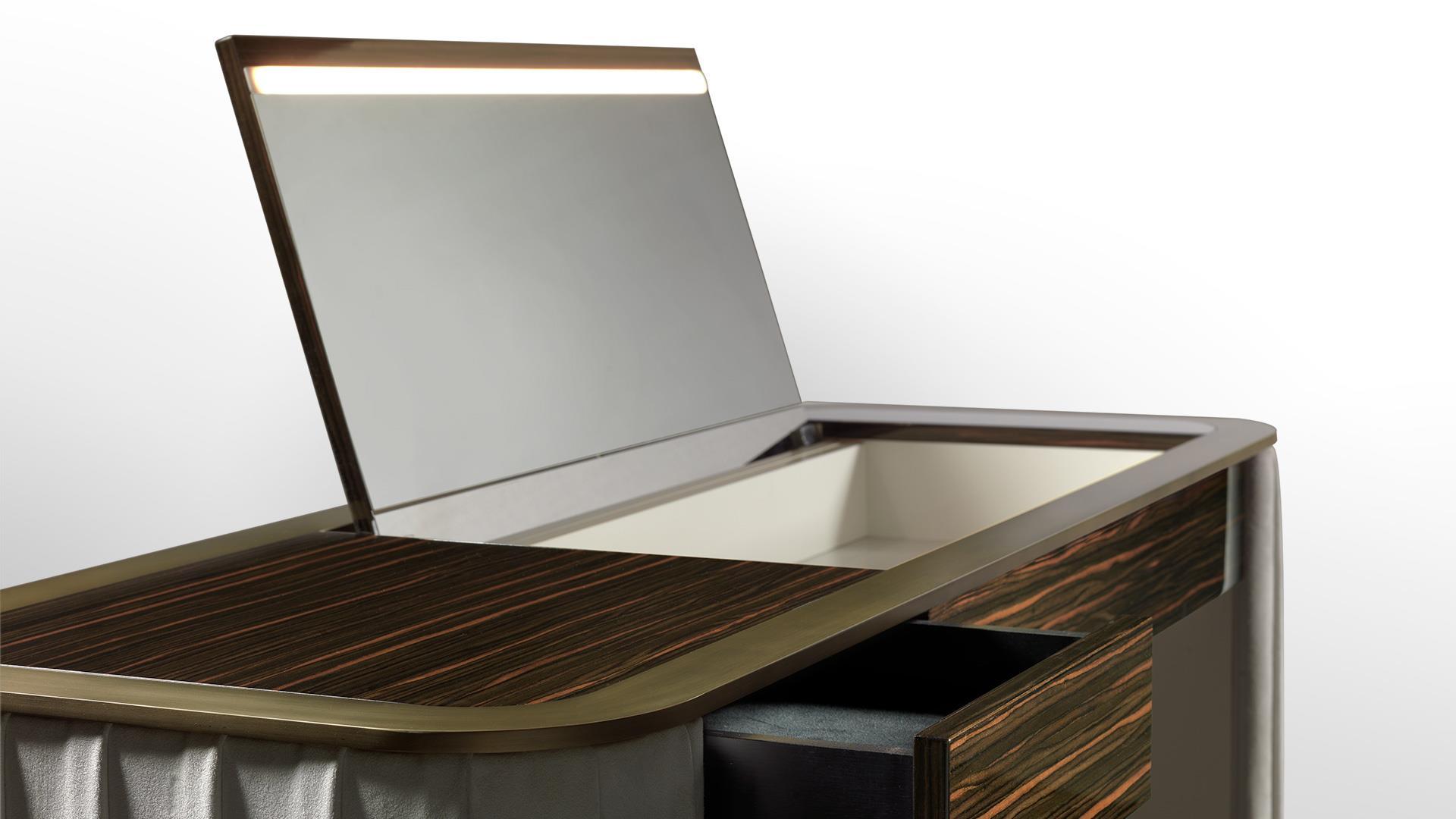 Туалетный столик PLISSE — это воплощение элегантности и утонченности. Его дизайн сочетает в себе классические мотивы и современные тенденции, создавая универсальный предмет, который дополнит как роскошные спальни, так и лаконичные апартаменты. Плавные изгибы, продуманные пропорции и внимание к деталям делают его не просто мебелью, а элементом искусства.