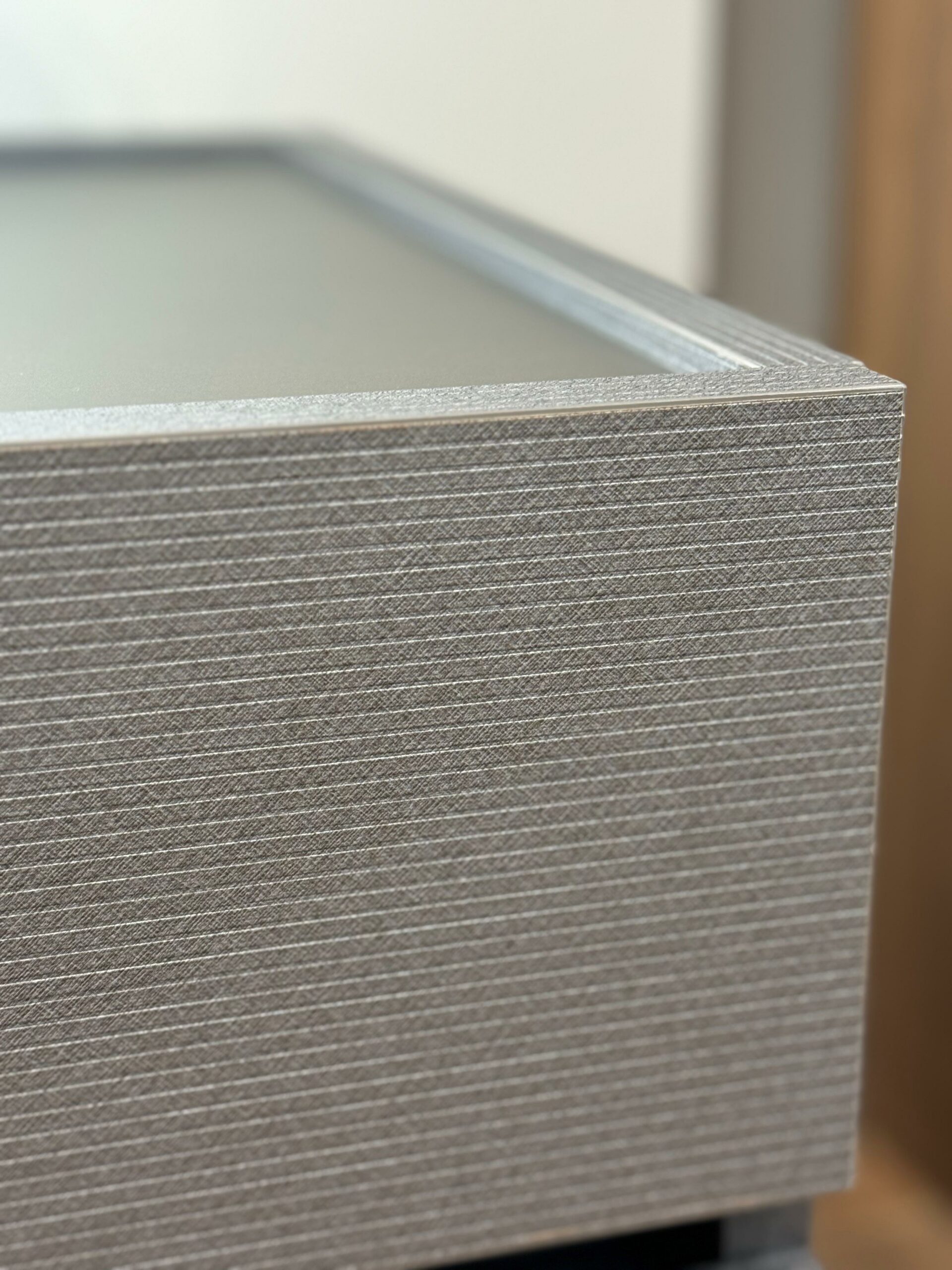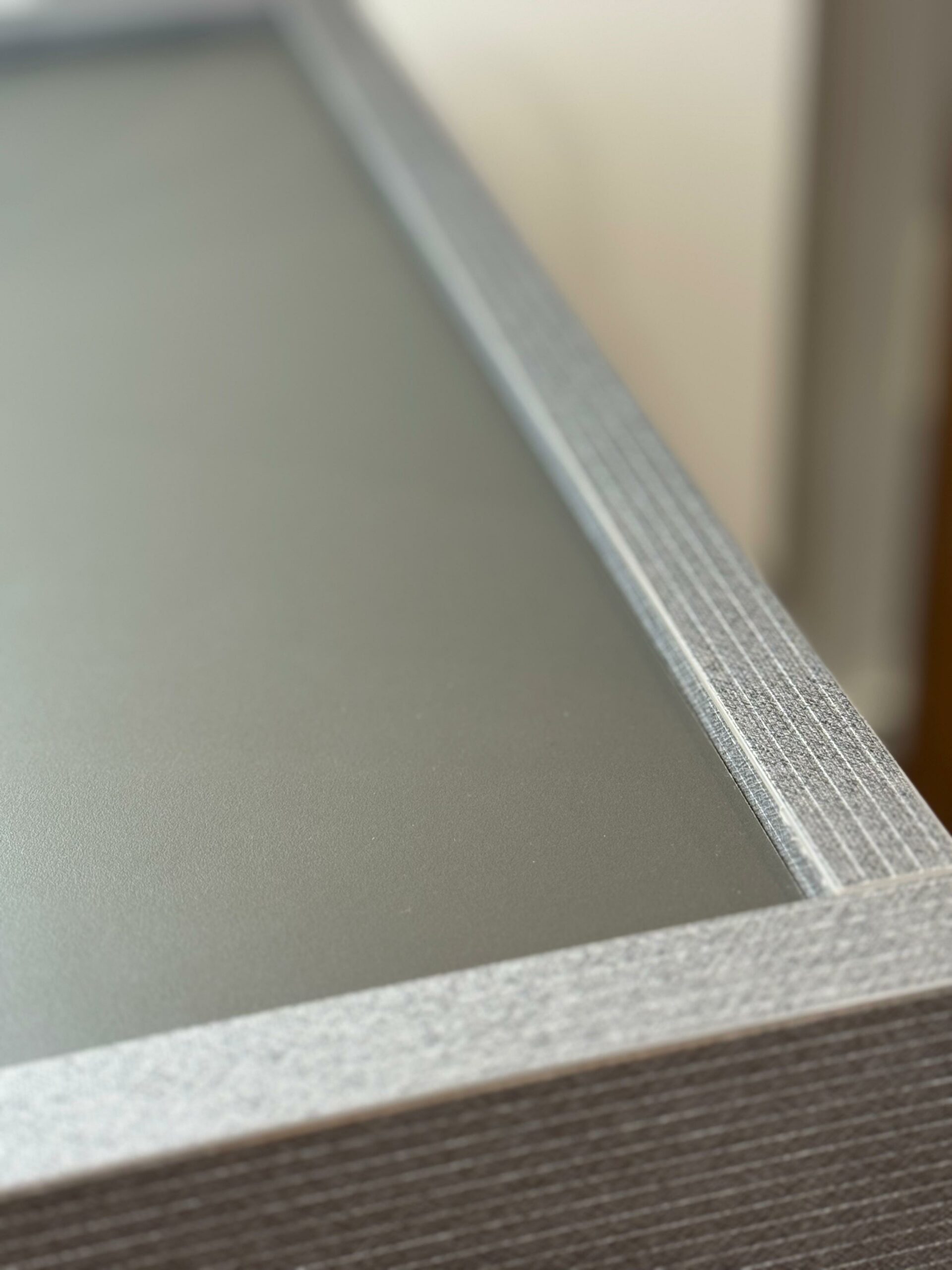 Соблазнительная отделка в серебристом цвете PAGLIA ARGENTO создаёт ощущение утончённой роскоши, а лаконичные линии тумбы делают её идеальным дополнением к современному интерьеру. Столешница из темно-серого HPL не только придаёт дополнительный элемент стиля, но и обеспечивает высокую устойчивость к повреждениям, что делает её невероятно практичной.