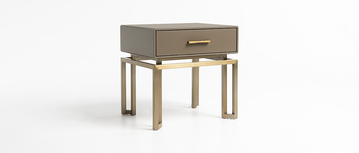 Тумбочка ORO от итальянской фабрики TOSCONOVA – элегантный элемент интерьера с уникальным металлическим основанием, придающим благородный отблеск.