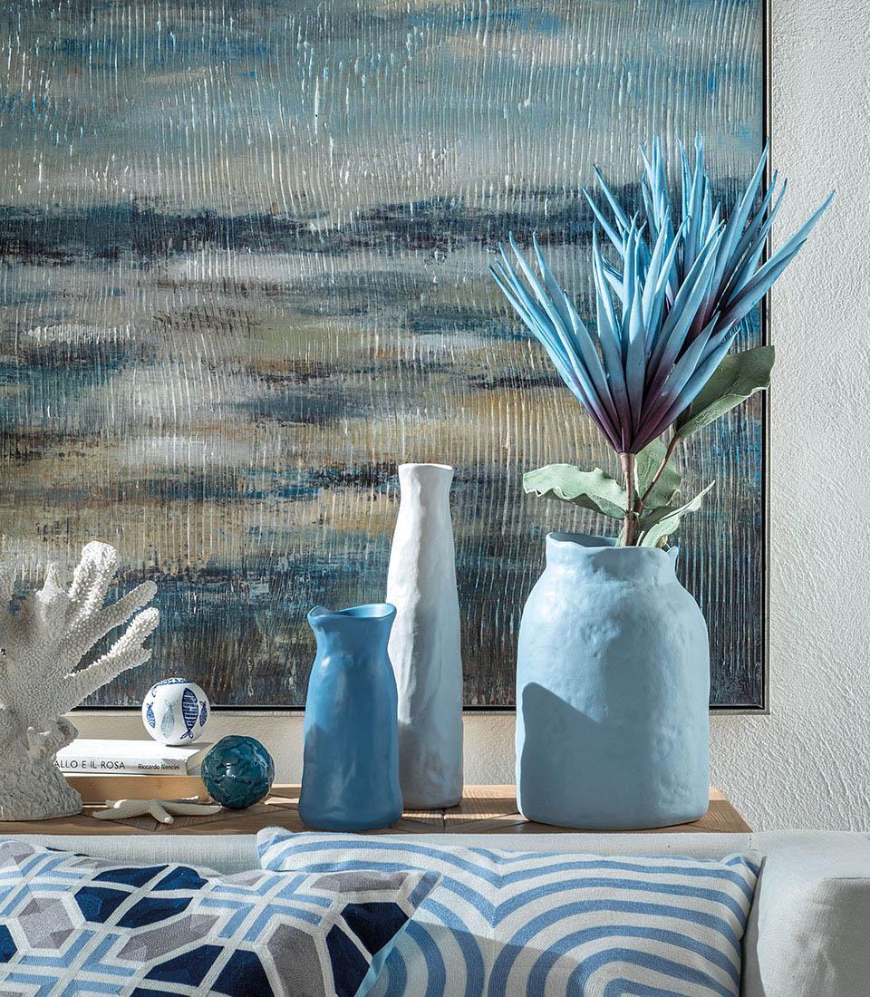 Высокая ваза из белой керамики поражает своим элегантным и минималистичным дизайном, который прекрасно впишется как в современный, так и в классический интерьер. С явным средиземноморским вдохновением, она может стать центральным элементом вашего декора. Сочетайте ее с цветными версиями, чтобы создать живописные композиции, которые будут радовать глаз и напоминать о безмятежности солнечных дней на побережье.