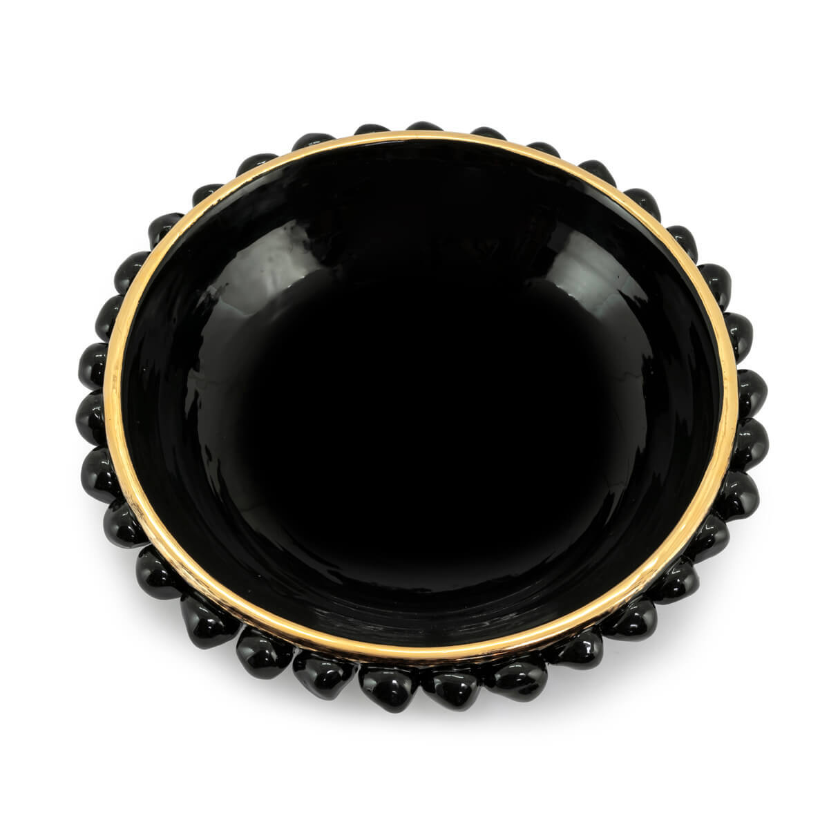 Погрузитесь в мир роскоши и утонченности с вазой IMPERO от итальянской фабрики ABHIKA. Это не просто предмет интерьера — это настоящая находка для ценителей искусства и красоты. Каждая ваза создается вручную, что подчеркивает её уникальность и исключительность. Ваза выполнена из высококачественной керамики, а уникальный декор из жидкого чистого золота и классические сосновые конусообразные украшения делают её настоящим произведением искусства.