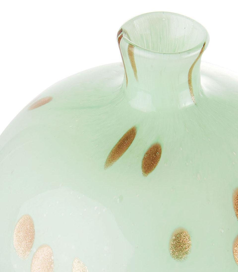 Использование нефритового стекла не только гарантирует долговечность и надежность, но и придаёт вазе утончённый вид. Золотые детали добавляют роскоши и изысканности, что делает эту вазу идеальным выбором для создания элегантной атмосферы.