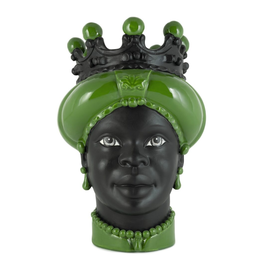 Ваза MORO LADY CROWN DARK — это уникальное изделие эксклюзивного производства итальянской фабрики ABHIKA. Ваза выполнена в форме головы, каждая деталь которой тщательно проработана и смоделирована вручную, что подчеркивает мастерство и индивидуальность. Все украшения на вазе также нанесены и расписаны вручную, что делает каждую вазу по-настоящему уникальной.