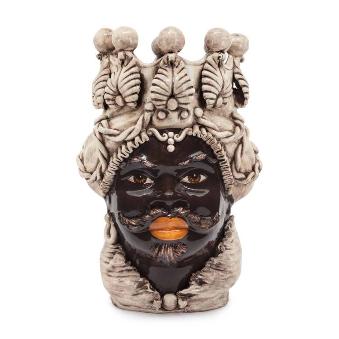 Ваза MORO MAN BIG — это изысканный элемент декора, созданный в традициях сицилийского ремесла. Изготовленная вручную мастерами Кальтаджироне, эта керамическая ваза темно-коричневого цвета сочетает в себе элегантность и уникальность. Каждый экземпляр расписан вручную, что делает его поистине неповторимым.