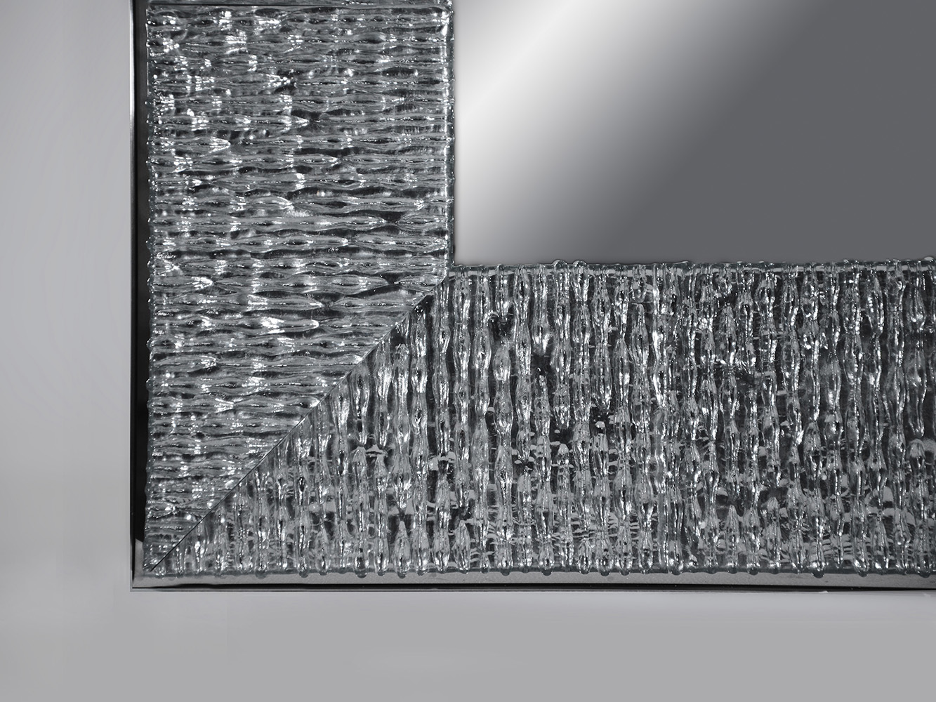 Каждое зеркало изготовлено вручную мастерами-стеклодувами в Венеции, что говорит о высоком уровне мастерства и приверженности традициям итальянского искусства. Рамка выполнена из драгоценного художественного стекла, дополненного металлическими элементами, что не только усиливает его прочность, но и придает изделию роскошный вид.