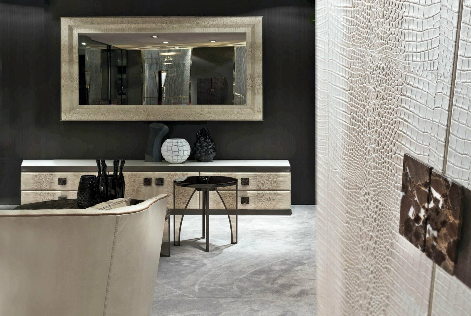 Зеркало ADONE — это воплощение итальянского изыска и современного дизайна. Изготовленное фабрикой LONGHI, данное зеркало привнесет в ваш интерьер нотки элегантности. Кромки из шлифованного металла доступны в нескольких отделках: Black Rose золото, матовое золото оттенка Шампанского и глянцевый хром. Рама, обтянутая кожей, добавляет утонченности и стиля.