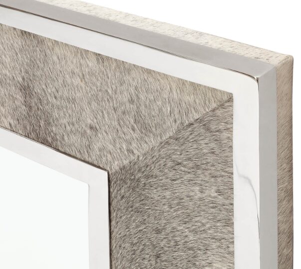 При создании зеркала использованы только высококачественные материалы, что гарантирует его долговечность и износостойкость. Хромированная поверхность легко очищается и сохраняет свой блеск на протяжении многих лет, в то время как покрытие из волос водяного буйвола придает уникальность и оригинальность каждой модели. Это зеркало — не просто предмет интерьера, а элемент, который расскажет о вашем безупречном вкусе и стремлении к качеству.