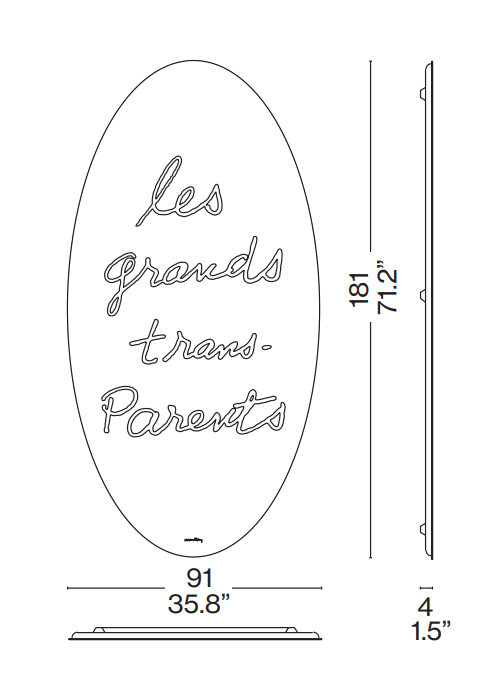 Зеркало LES GRANDS TRANS PERENTS от итальянской фабрики Cassina – культовый дизайнерский предмет, придающий интерьеру сюрреалистичный шарм. Овальная форма с текстом, нанесённым на стекло, создаёт эффект фильтрации отражения, вдохновлённый художественной работой. Идеально вписывается в современные пространства, сочетая функциональность с арт-объектом.