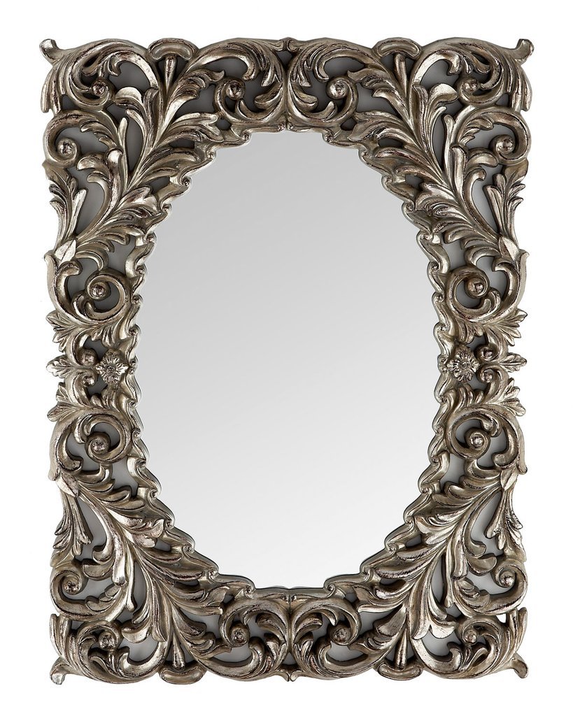 Зеркало MASSIMO SILVER – элегантное настенное решение в стиле французского барокко. Овальное зеркало заключено в прямоугольную раму из дерева и полиуретана с витиеватым растительным орнаментом. Цвет рамы – античное серебро, что придает интерьеру благородный классический шарм.
