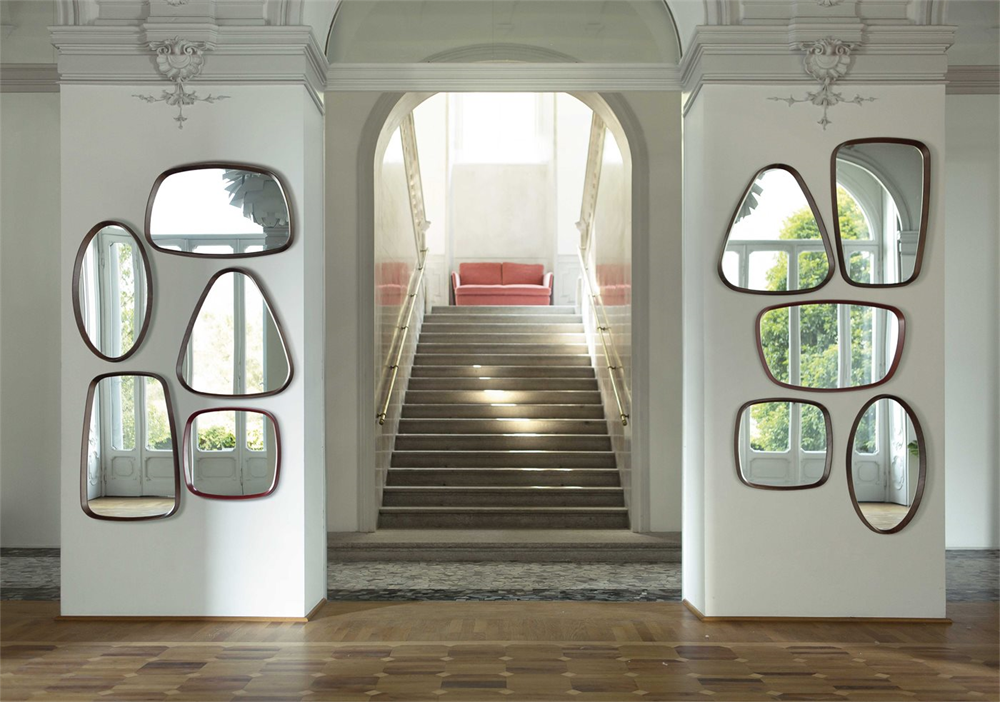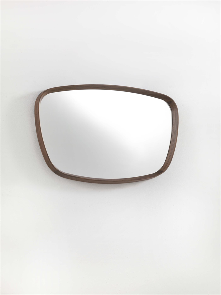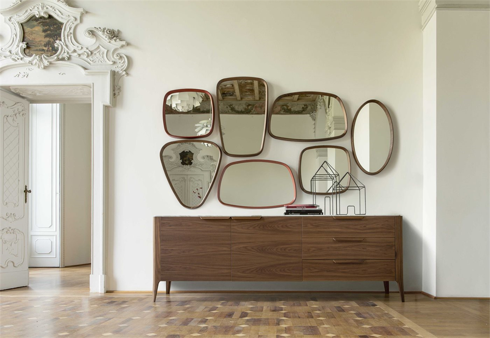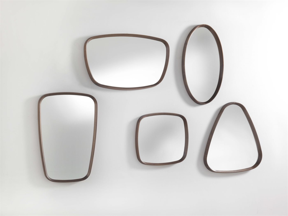 Настенное зеркало выполнено в различных формах и обрамлено массивом ореха каналетта, что придаёт ему уникальный стиль.