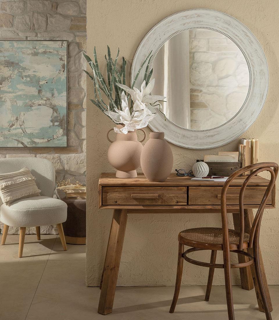 Откройте для себя элегантность с зеркалом PLATE от итальянской фабрики Locanera. Это круглое зеркало диаметром 90 см из декорированного беленого дерева станет изюминкой вашего интерьера, добавляя современные кантри-нотки. Каждое изделие создается вручную, что делает его уникальным и подчеркивает итальянские традиции мастерства.