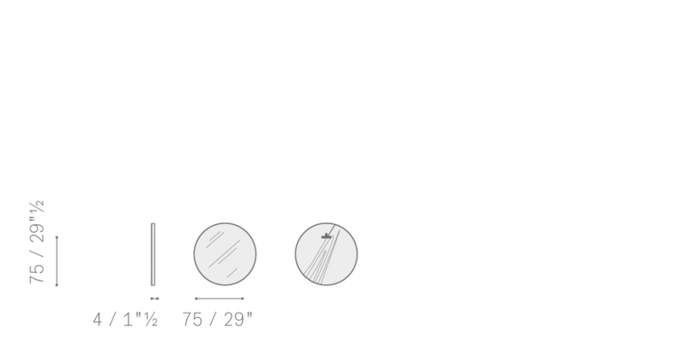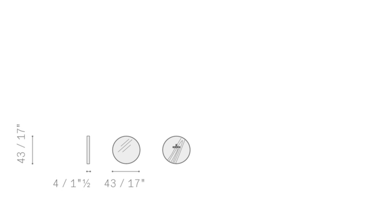 Круглая версия зеркала имеет диаметр 430 мм; настольная версия — диаметр 310 мм.