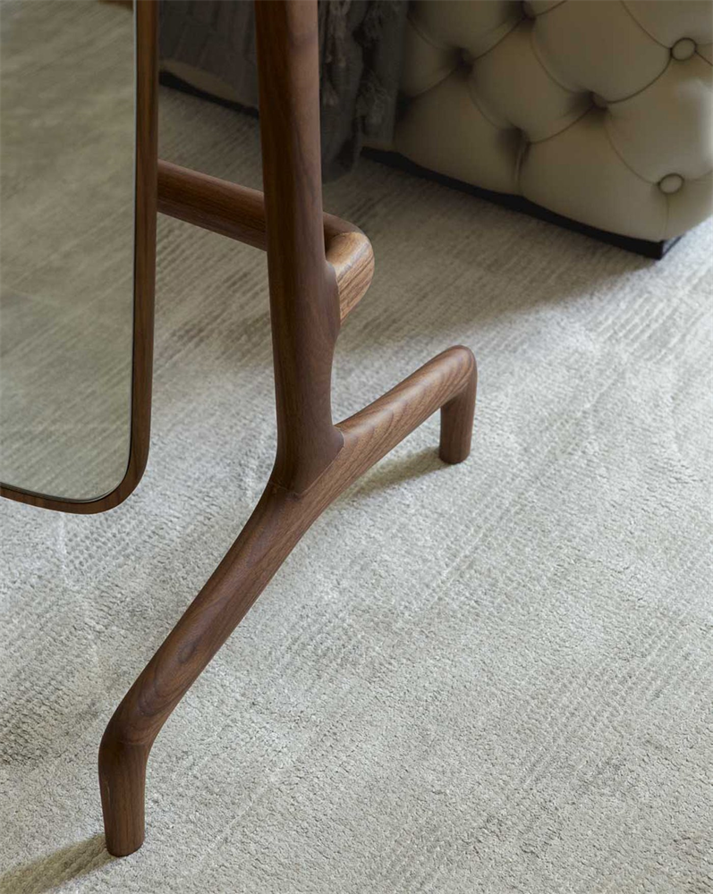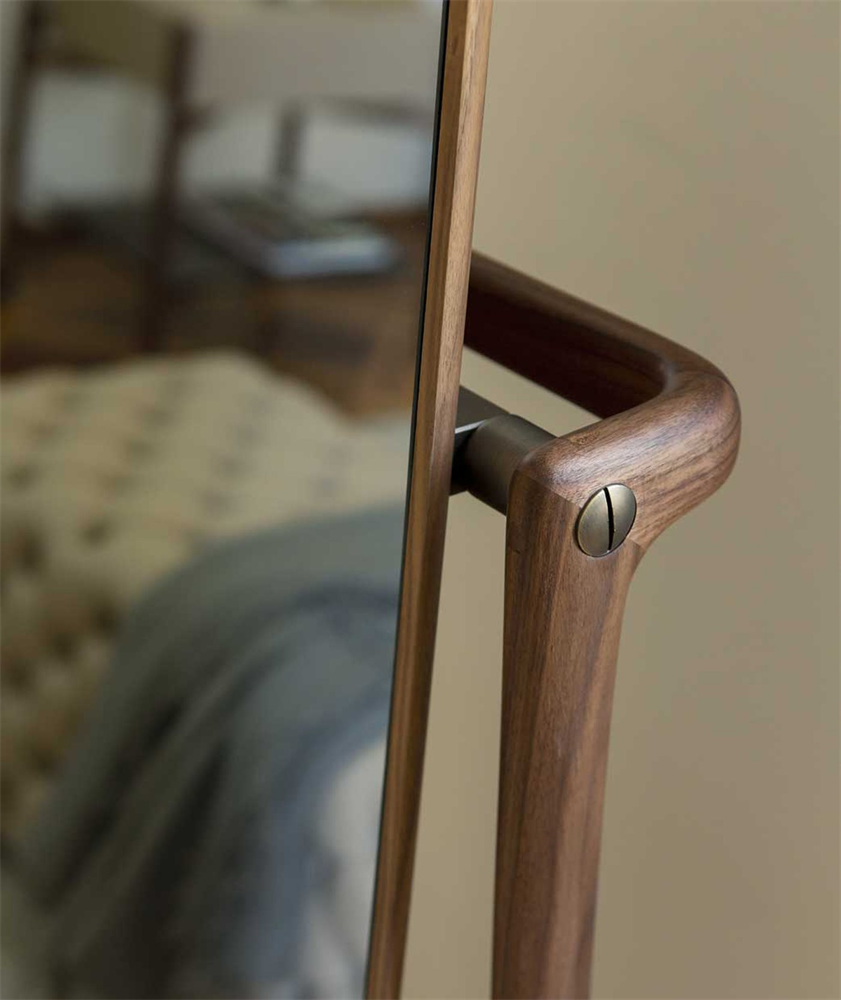 Изготовлено из массива ореха каналетта, зеркало отличается не только прочностью, но и великолепной текстурой древесины, которая привносит тепло и уют в любое пространство. Детали из бронзовой латуни придают изделию дополнительную роскошь и утонченность, создавая неповторимый облик, который будет радовать вас долгие годы.