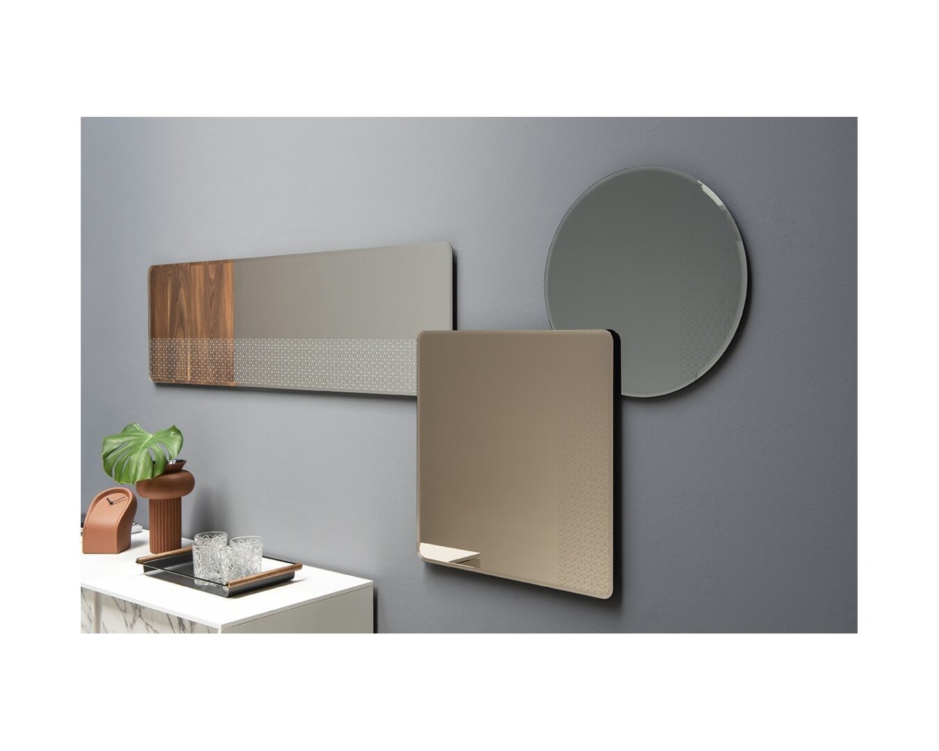 Зеркало TRIX CS/5114-R от итальянской фабрики CALLIGARIS – стильное решение для современного интерьера. Геометрическая форма и декоративный шелкотрафаретный рисунок придают зеркалу уникальный характер. Доступно в трёх вариантах композиции: отдельно, в паре или комбинации форм. Итальянское качество гарантирует долговечность и безупречный дизайн.