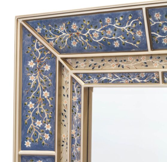 Фабрика ABHIKA использует только благородные материалы, что гарантирует долговечность и высокое качество продукции. Ручная роспись стекла делает каждое зеркало уникальным произведением искусства, а прочная деревянная рама обеспечивает надежность и устойчивость. Ваша гостиная или спальня заиграет новыми красками с этим роскошным элементом декора.