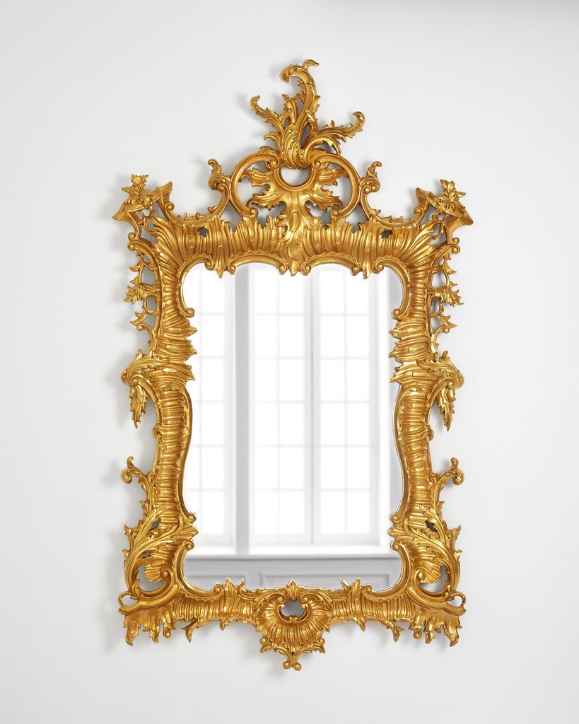 Зеркало VERMONT GOLD от фабрики LOUVREHOME – роскошное настенное зеркало с золотой рамой в стиле Чиппендейл. Декоративная рама из дерева и полиуретана украшена изящными мотивами листьев, виноградных лоз и цветов, придавая интерьеру классический шарм и элегантность барокко.