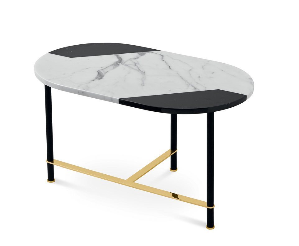 Журнальный столик Cookies выделяется своей уникальной столешницей, выполненной из натурального глянцевого мрамора Bianco Statuario и Nero Marquinia. Эти благородные материалы не только придают изделию безупречный вид, но и гарантируют долговечность и устойчивость к внешним воздействиям. Также доступна версия с верхом из инкрустированного дерева с мотивом «Твид», выполненным из белого Taba Frisè и черного Tanganika, что позволяет адаптировать столик под любой интерьер.