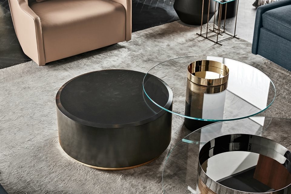 Столик Gong обладает изысканным дизайном с скошенной кромкой, что придает ему легкость и элегантность. Он доступен в нескольких вариантах отделки: «Осеннее плетение» с основой из листового золота, «Черный углерод» с использованием меди, а также «Winter Weave» на основе сусального серебра. Каждый из этих вариантов привносит свою уникальную атмосферу, позволяя создать интерьер мечты, в котором будет приятно проводить время.