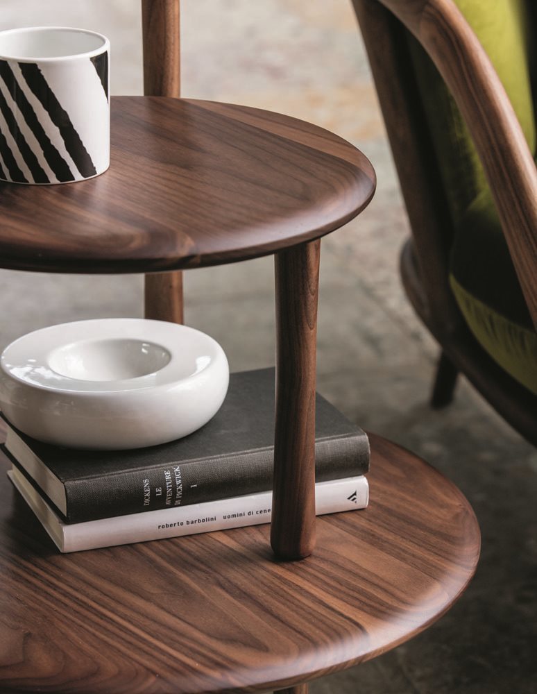 Элегантный круглой формы, столик выполнен из массива ореха каналетта, что гарантирует его долговечность и стильный внешний вид. Столешница может быть из дерева или матового лака, что позволяет выбрать идеальный вариант для вашего интерьера.