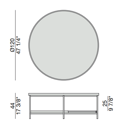 Журнальный столик Koster имеет диаметр 120 см (Ø120).