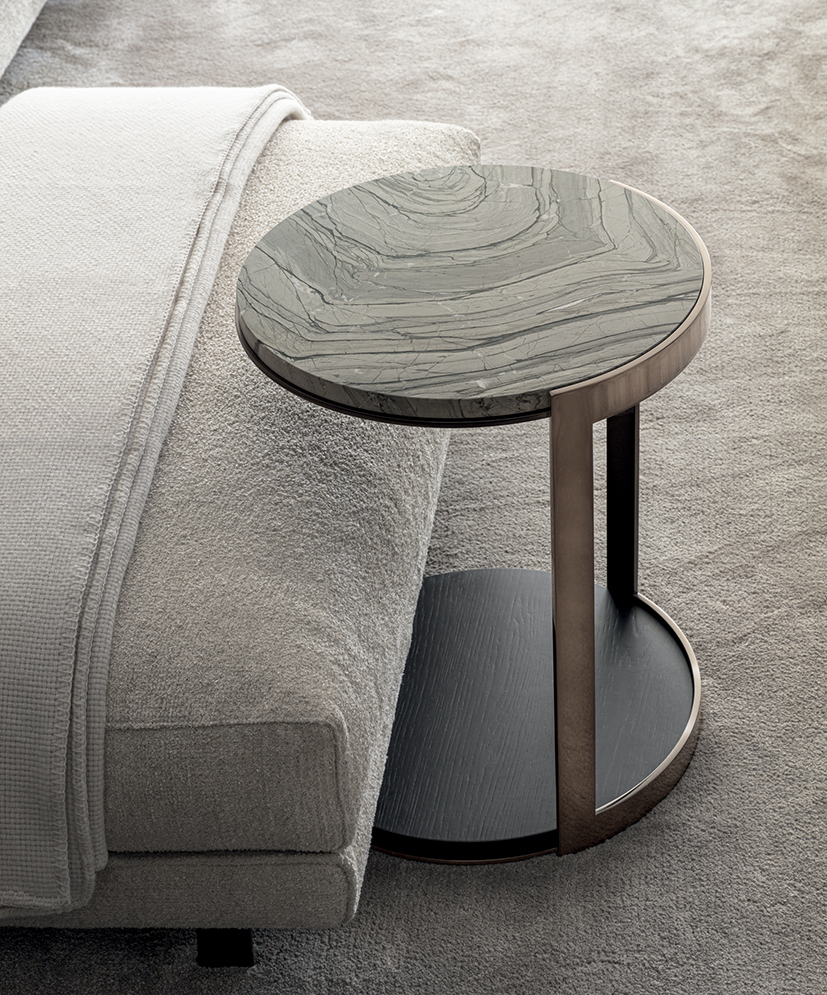 Столик ALISEE отличается лаконичным, но выразительным дизайном, в котором каждая линия продумана до мелочей. Его силуэт сочетает в себе современную эстетику и классическую утонченность, что делает его универсальным решением для гостиных, кабинетов или зон отдыха. Минимализм здесь соседствует с благородной сдержанностью, а плавные изгибы добавляют интерьеру динамики.