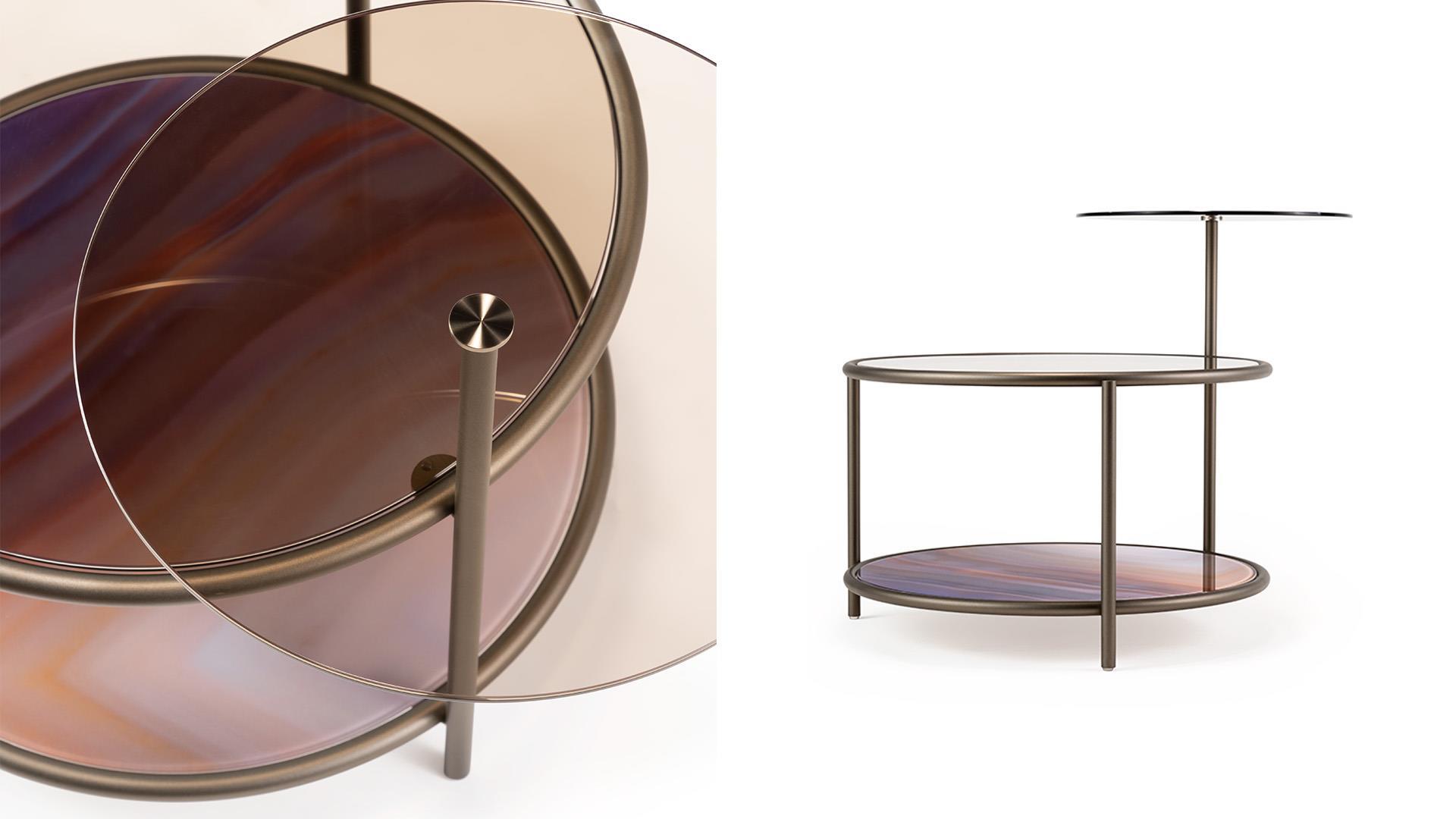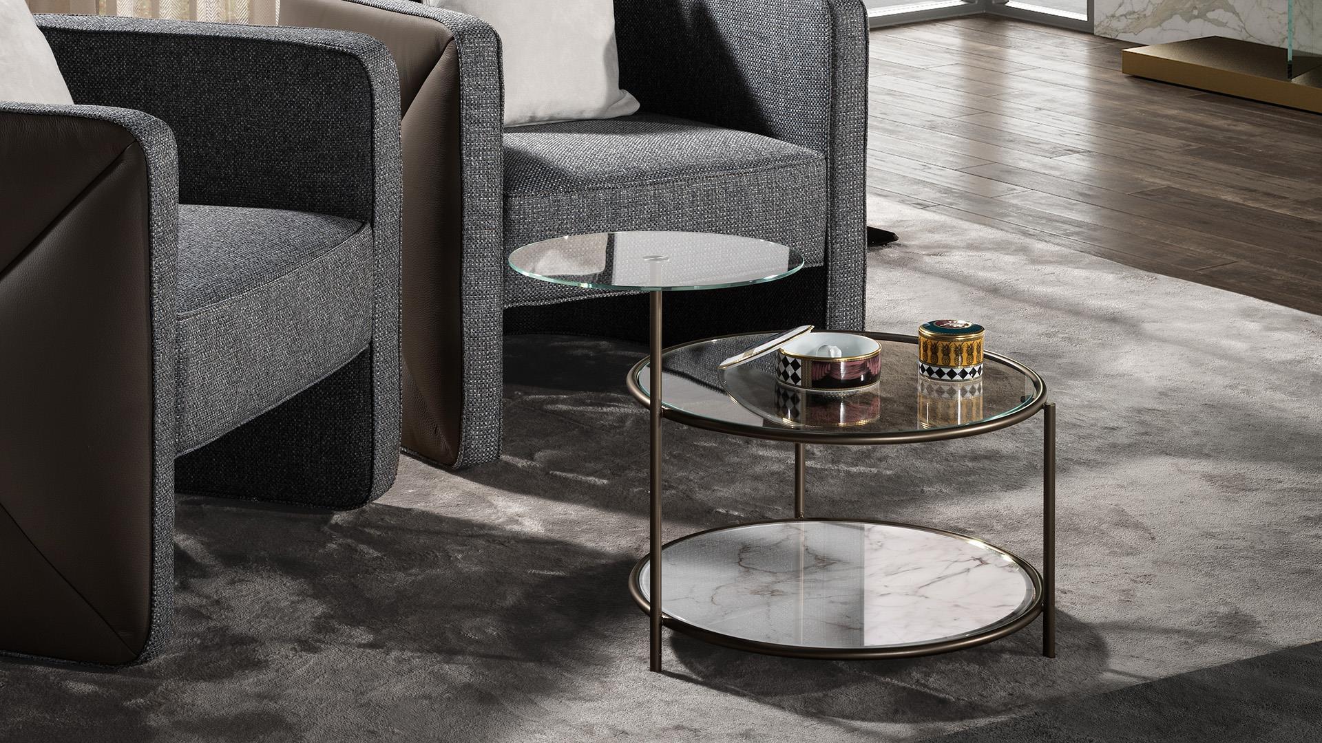 Журнальный столик EGEO от итальянской фабрики REFLEXANGELO – элегантное решение для современного интерьера. Металлическая конструкция с бронзовой отделкой придает модели изысканность, а нижний ярус из мраморного стекла добавляет легкости и стиля.