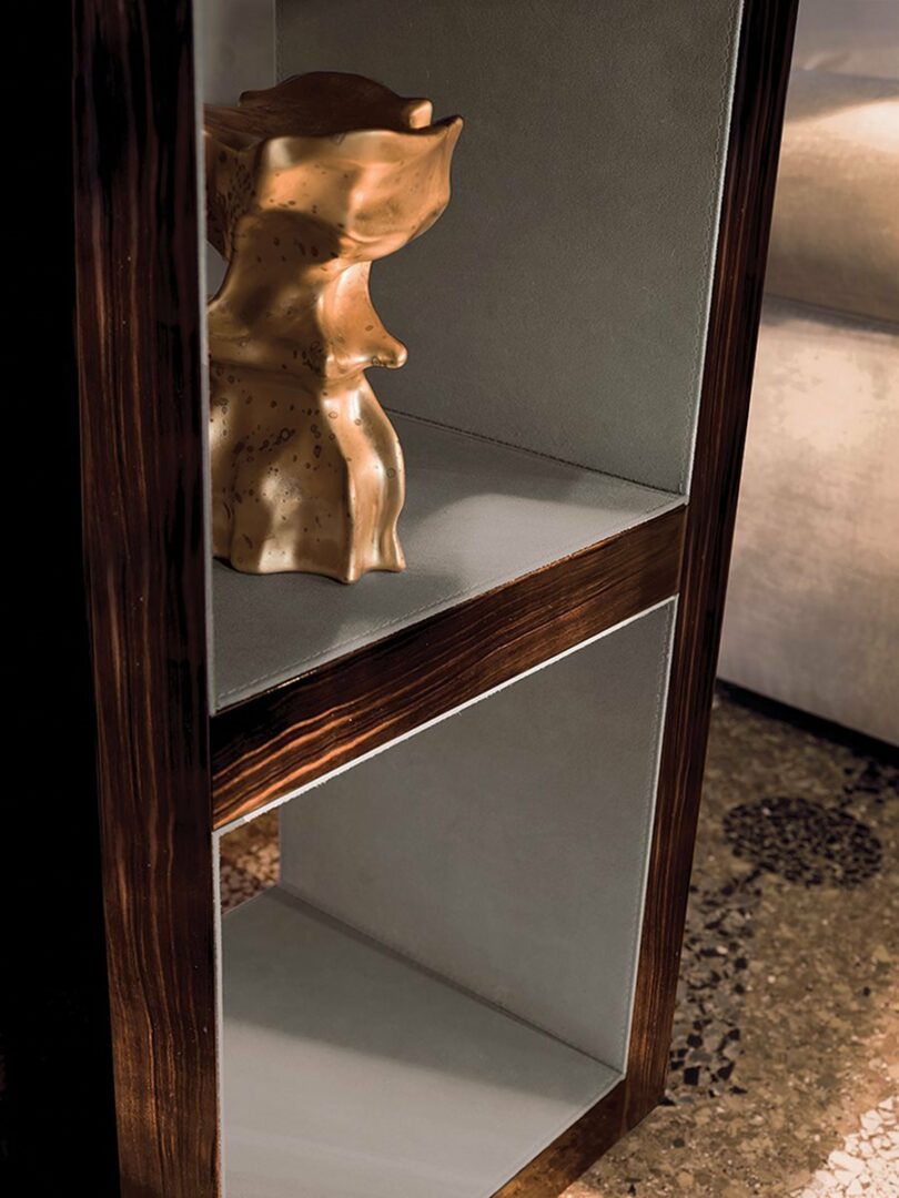 Столик HAMILTON отличается продуманными линиями и утонченными формами, что делает его идеальным дополнением для самых различных интерьеров. Его глянцевая отделка, доступная в нескольких вариантах — от матового до глянцевого эбенового дерева, ореха Canaletto и Sycamore frisè — позволяет легко интегрировать столик в любое пространство. Нижняя панель, обтянутая кожей P.3 категории Suede и Lusso, добавляет элемент роскоши и подчеркивает высокие стандарты итальянского дизайна.