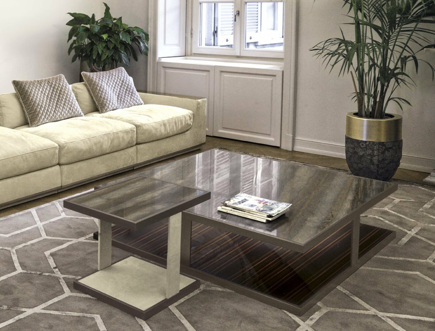Журнальный столик LAYER идеально впишется в любой роскошный интерьер, будь то современная гостиная или классическая обстановка. Представьте, как этот столик станет центром вашего пространства, окруженный уютными креслами, где вы будете наслаждаться вечерними беседами с близкими или утренним кофе. Возможность персонализации обивки и отделки позволяет создать интерьер мечты, который отражает ваш стиль.