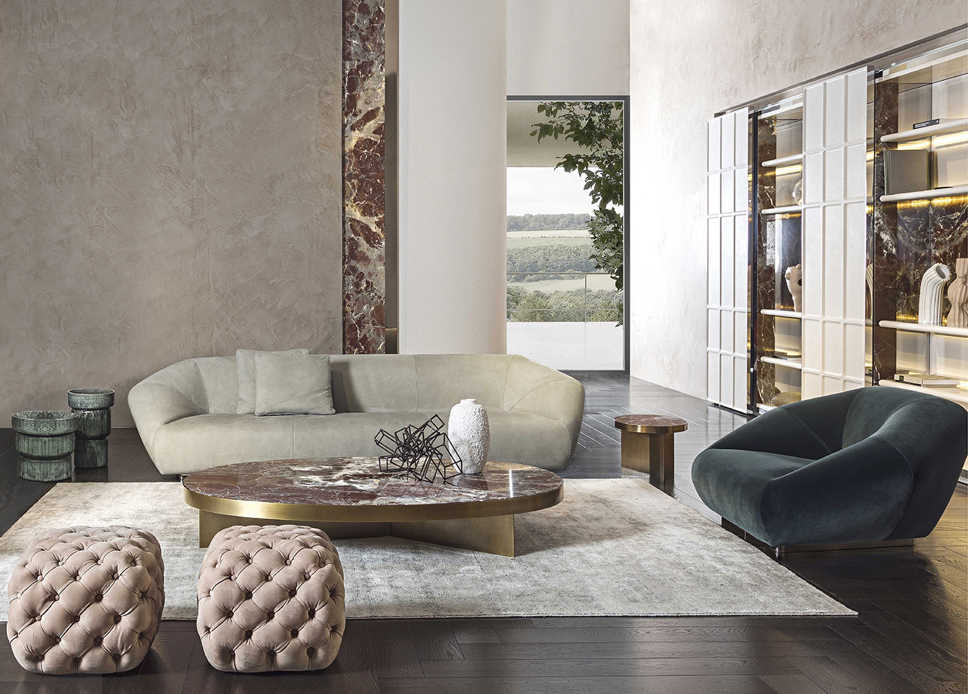 Столик Linfa поражает своим дизайном, в котором основное внимание уделяется великолепному мрамору. Мраморная столешница, украшенная множеством параллельных гравюр, создает завораживающие геометрические узоры, каждый из которых уникален. Тонкие металлические ножки, доступные в различных отделках, подчеркивают элегантность и легкость конструкции, обеспечивая прочность и стабильность.