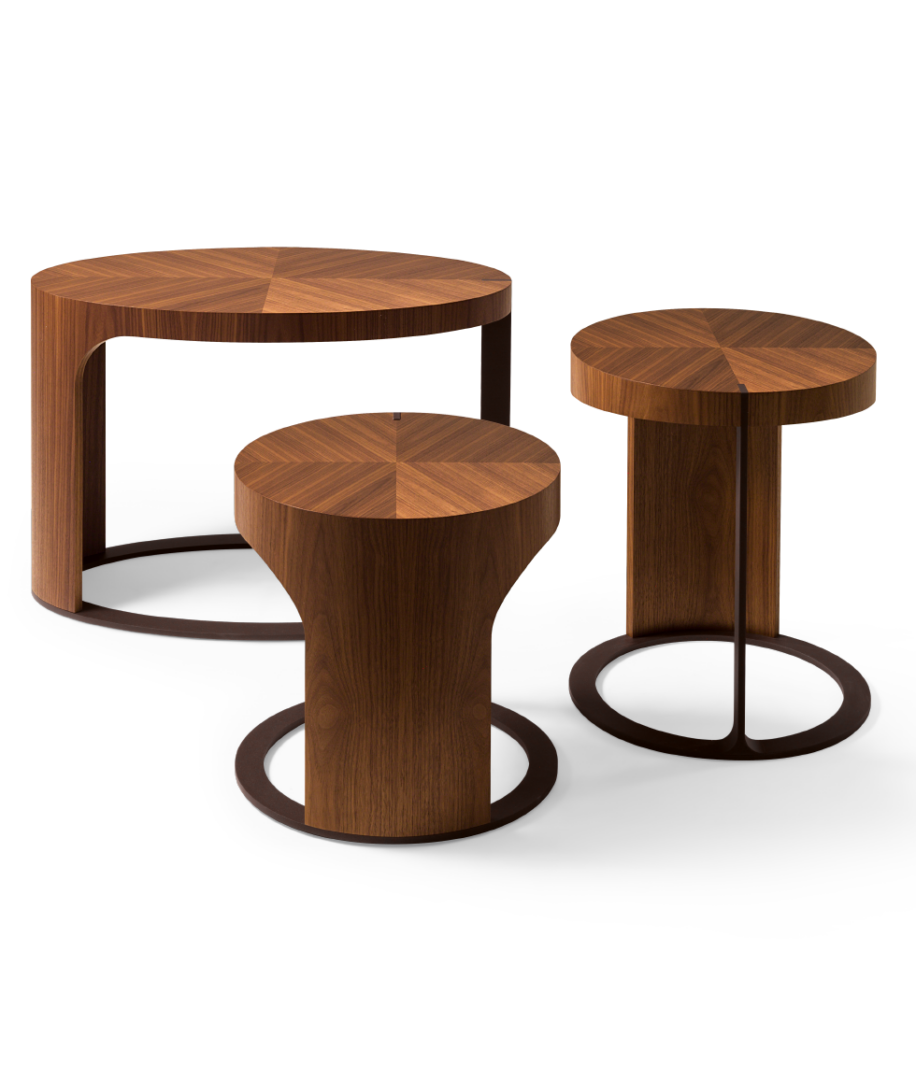 Итальянский журнальный столик LING от фабрики GIORGETTI — это воплощение утонченного стиля и элегантности. Изготовленный из грецкого ореха Canaletto и бронзового окрашенного металла, столик предлагает идеальное сочетание прочности и эстетики. Доступен в различных формах: круглом и овальном, с размерами, подходящими для любого интерьера.