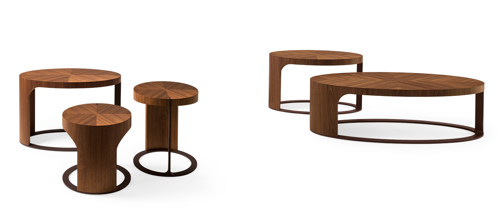 Журнальный столик выпускается в вариантах: круглый Ø 45 × H 45 см и овальный 130 × 60 × H 38 см.