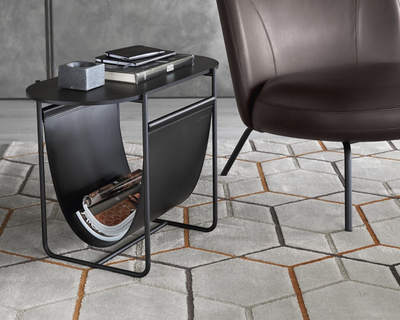 Итальянский журнальный столик MAGAZINE CS/5108 от CALLIGARIS – воплощение утончённой элегантности и функциональности. Металлическая рама с матовым чёрным или полированным латунным покрытием сочетается с овальной столешницей из керамики или дерева. Особый шарм придаёт карман для журналов из регенерированной кожи. Размеры: 73×36×52 см. Итальянское качество и дизайн делают этот столик стильным акцентом в любом интерьере.