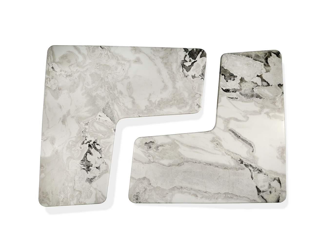 Столик Miller имеет уникальную L-образную форму, которая гармонично подчеркивает его изысканность. Столешница из натурального мрамора с полностью закругленными краями не только эстетически привлекательна, но и практична, обеспечивая долгий срок службы. Основу составляют множество тонких хромированных металлических стержней, соединенных друг с другом, что создает легкость и воздушность конструкции.