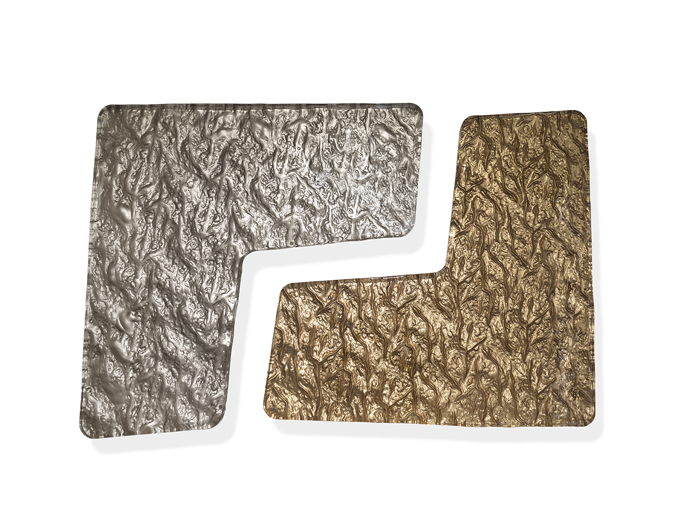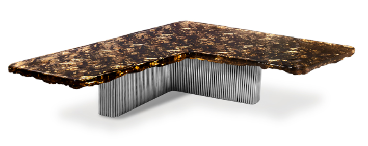 Столик Miller изготовлен из высококачественного художественного стекла и прочного металла. Стеклянная столешница, обладая гладкой поверхностью, создает контраст с рябью нижней части, окрашенной в особую металлическую пигментацию. Этот эффект придает изделию трехмерность и делает его настоящим произведением искусства.
