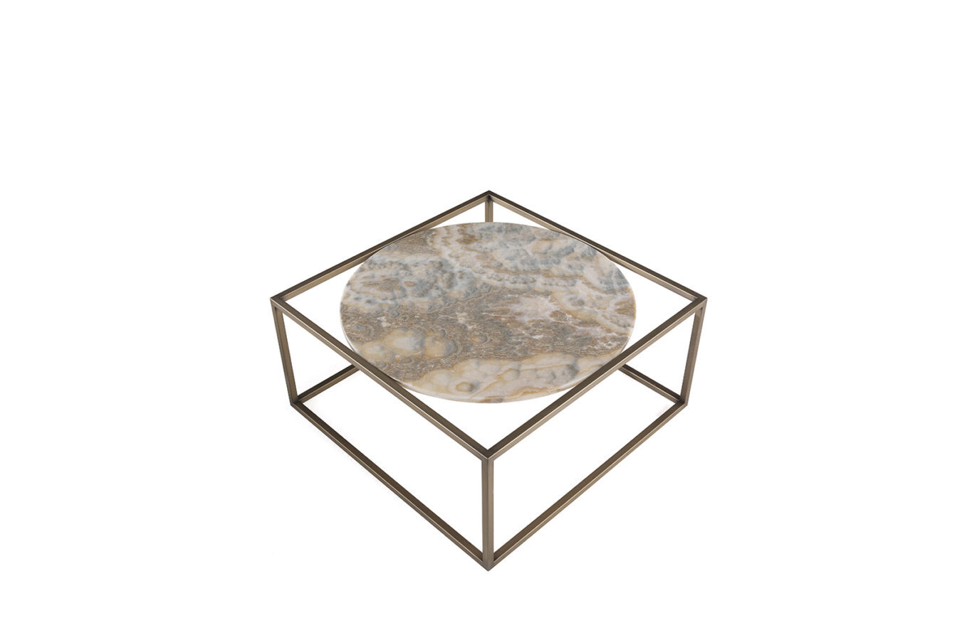 Журнальный столик Norrebro от итальянской фабрики Gianfranco Ferre Home – гармоничное сочетание геометрических форм и премиальных материалов. Винтажная прямоугольная основа с бронзированной отделкой эффектно контрастирует с круглой столешницей из серого оникса, создавая вневременную элегантность. Металлическая конструкция с эффектом brushed bronze и натуральный камень верхней части подчеркивают статусность дизайна. Итальянское качество исполнения гарантирует долговечность и безупречный внешний вид.