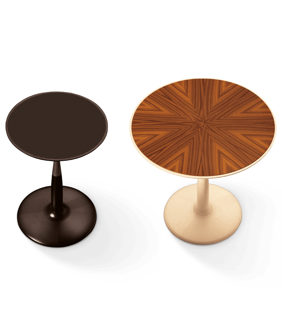 Каждый столик OTI изготавливается из благородного клена, а колонны могут быть выполнены из атласа или бронзового никеля. Вставки на поверхности представляют собой стекло, пау ферро или сапелли, что добавляет элегантности и глубины. Использование таких материалов подчеркивает высокое качество и долговечность изделия, что делает его идеальным выбором для ценителей итальянской мебели.