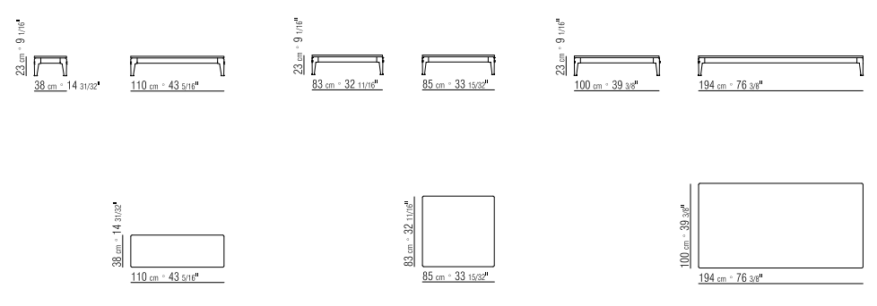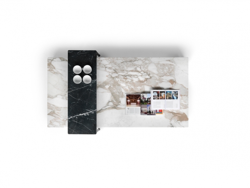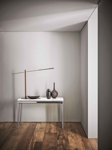 Модель отличается высокой степенью кастомизации — вы можете выбрать отделку алюминиевой конструкции (полировка, сатинирование, хромирование) и комбинировать ее с разными материалами верха. Столик представлен в нескольких размерах, что позволяет идеально вписать его в интерьер.