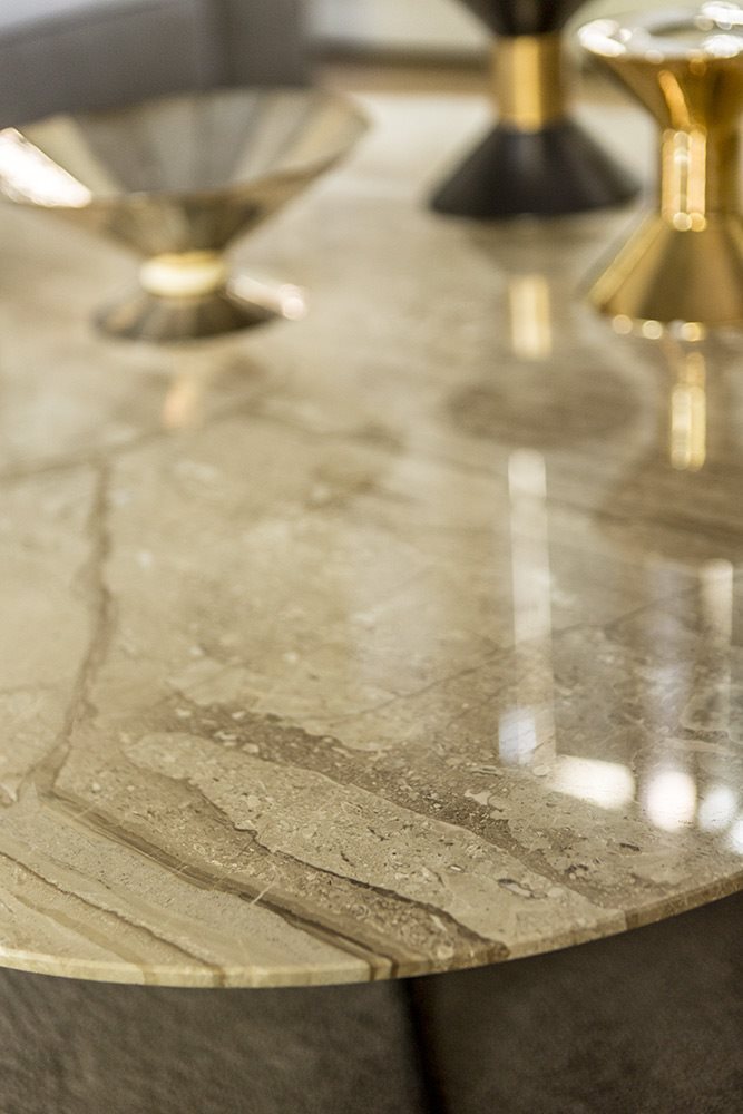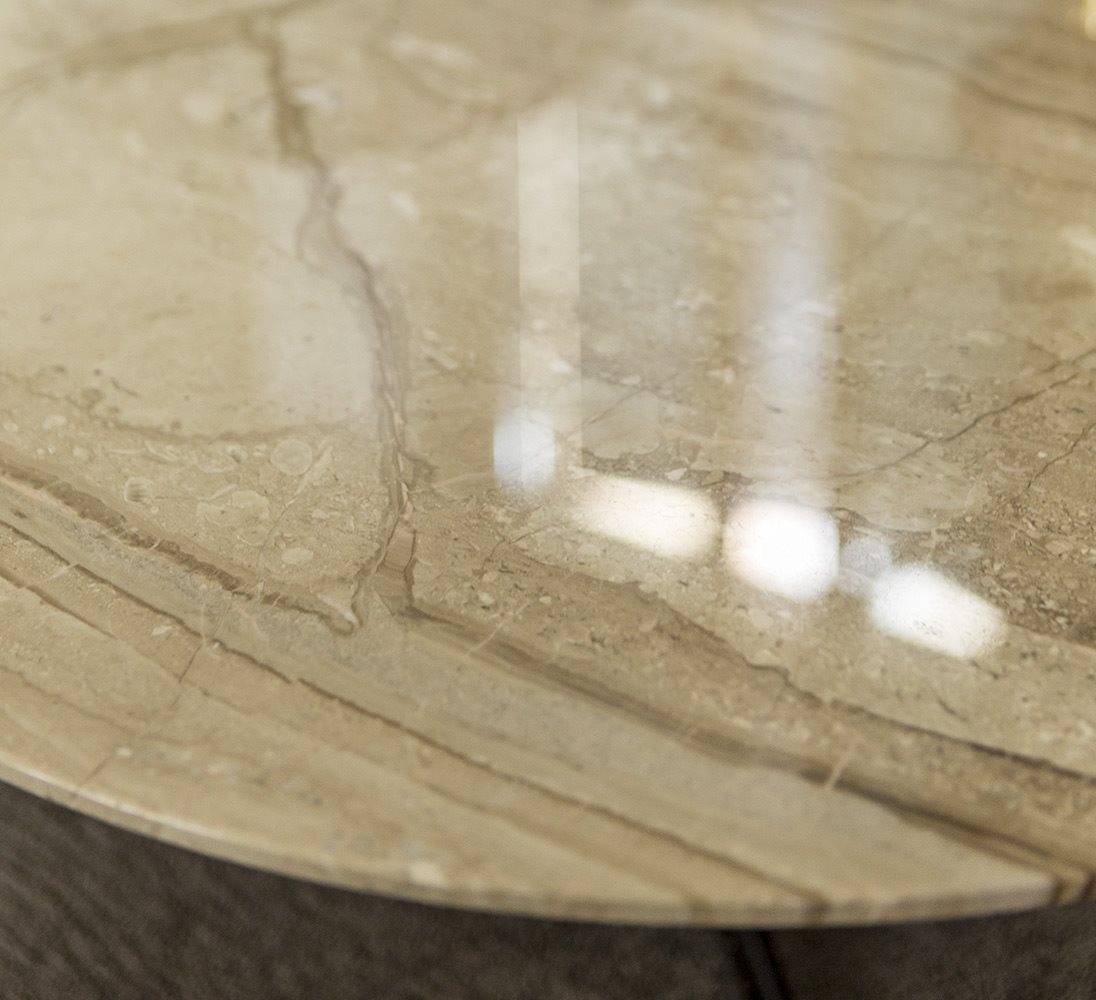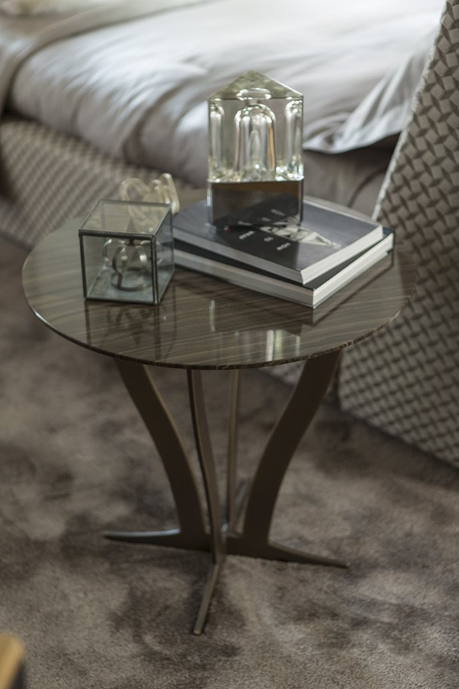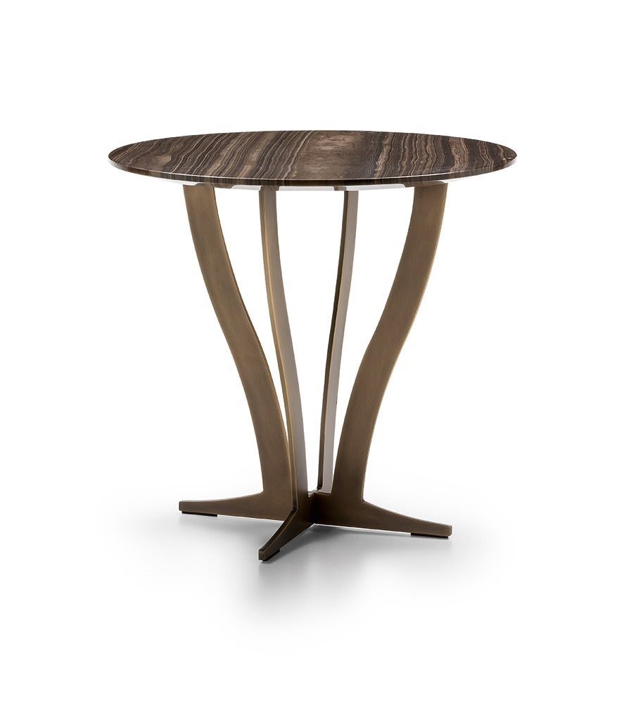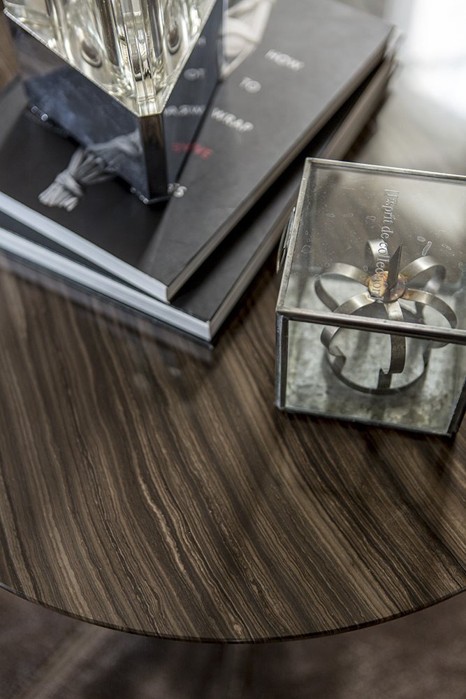 Столик Richard отличается утонченным стилем и современными формами. Его металлическая основа доступна в нескольких отделках: медной, бронзовой и коричневой, что позволяет легко вписать его в любые интерьеры – от классических до современных. Столешница из мрамора, доступная в таких вариантах, как Magic Brown, Calacatta White, Marquina Black, Daino Reale, Emperador Brown, Onice Rosso и Travertino Rosso Persia, подчеркивает выразительность и индивидуальность этой модели.