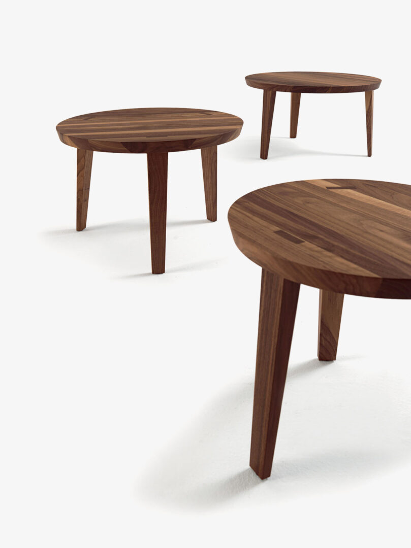 Журнальный столик TAO от итальянской фабрики RIVA 1920 – элегантное решение для современного интерьера. Изготовлен из массива дерева с возможностью выбора диаметра (Ø 40, 50 или 60 см) и высоты. Доступен в нескольких благородных оттенках: грецкий орех без сучков, клен, вишня, дуб без сучков и пигментированный дуб в глубоком черном цвете. Итальянское качество и продуманный дизайн позволяют комбинировать столики, размещая один под другим.